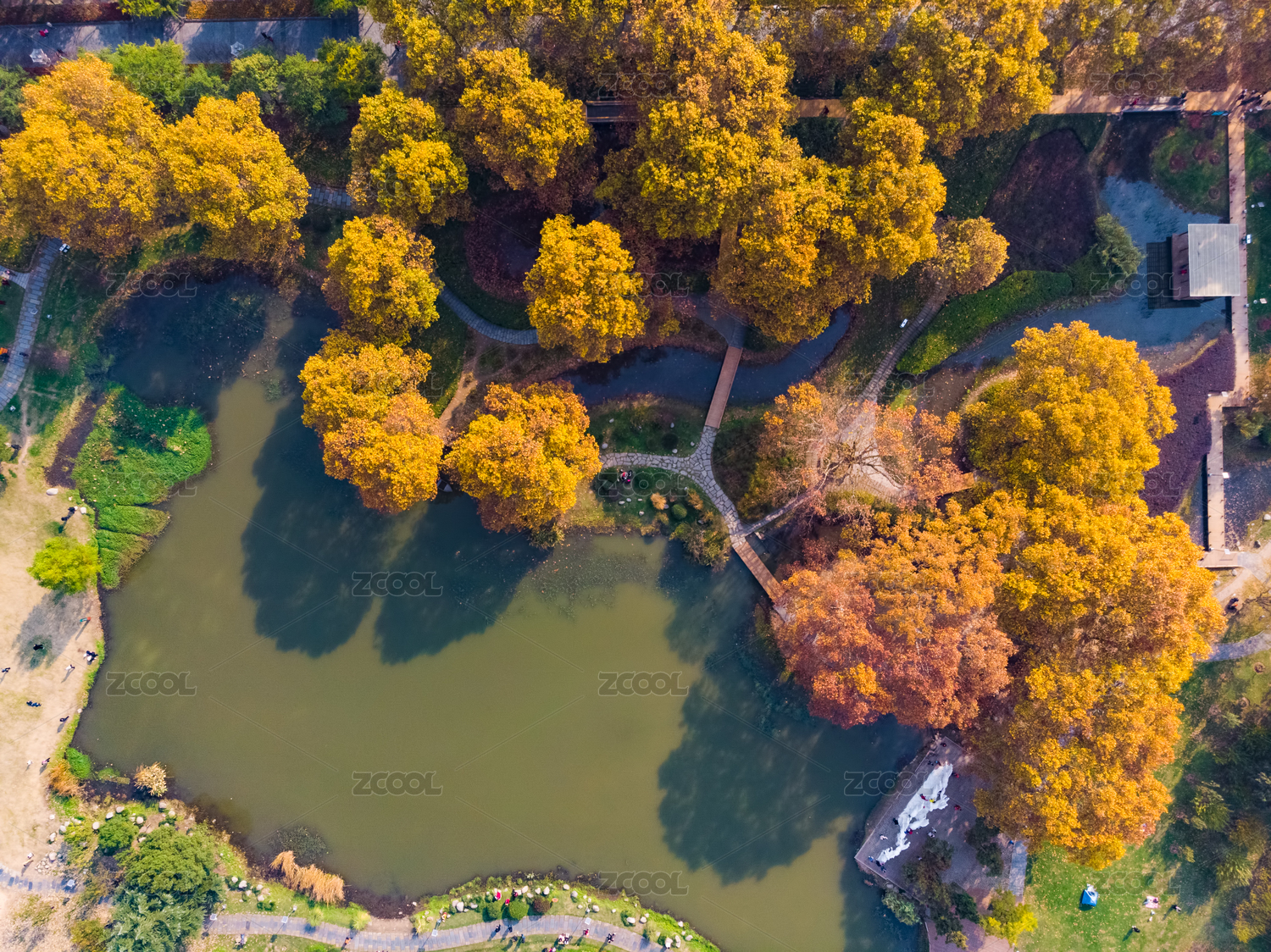 湖北武汉解放公园秋季航拍风光