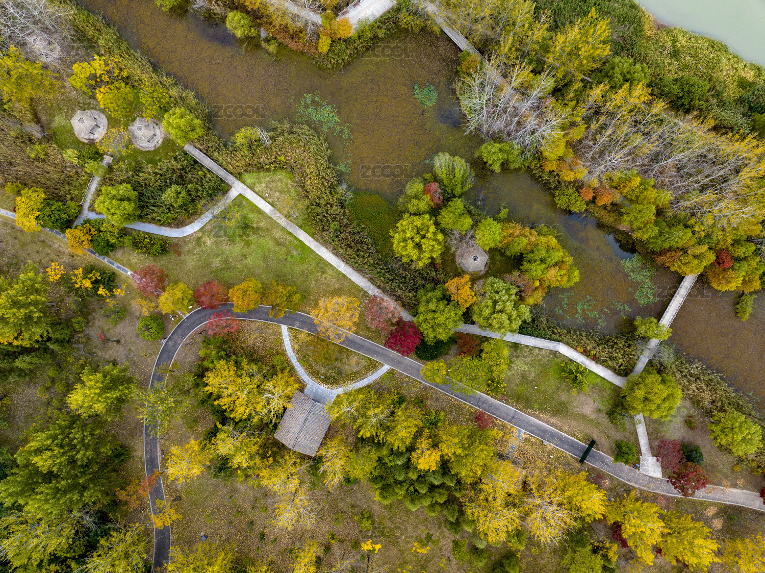 中国湖北武汉解放公园深秋航拍风光