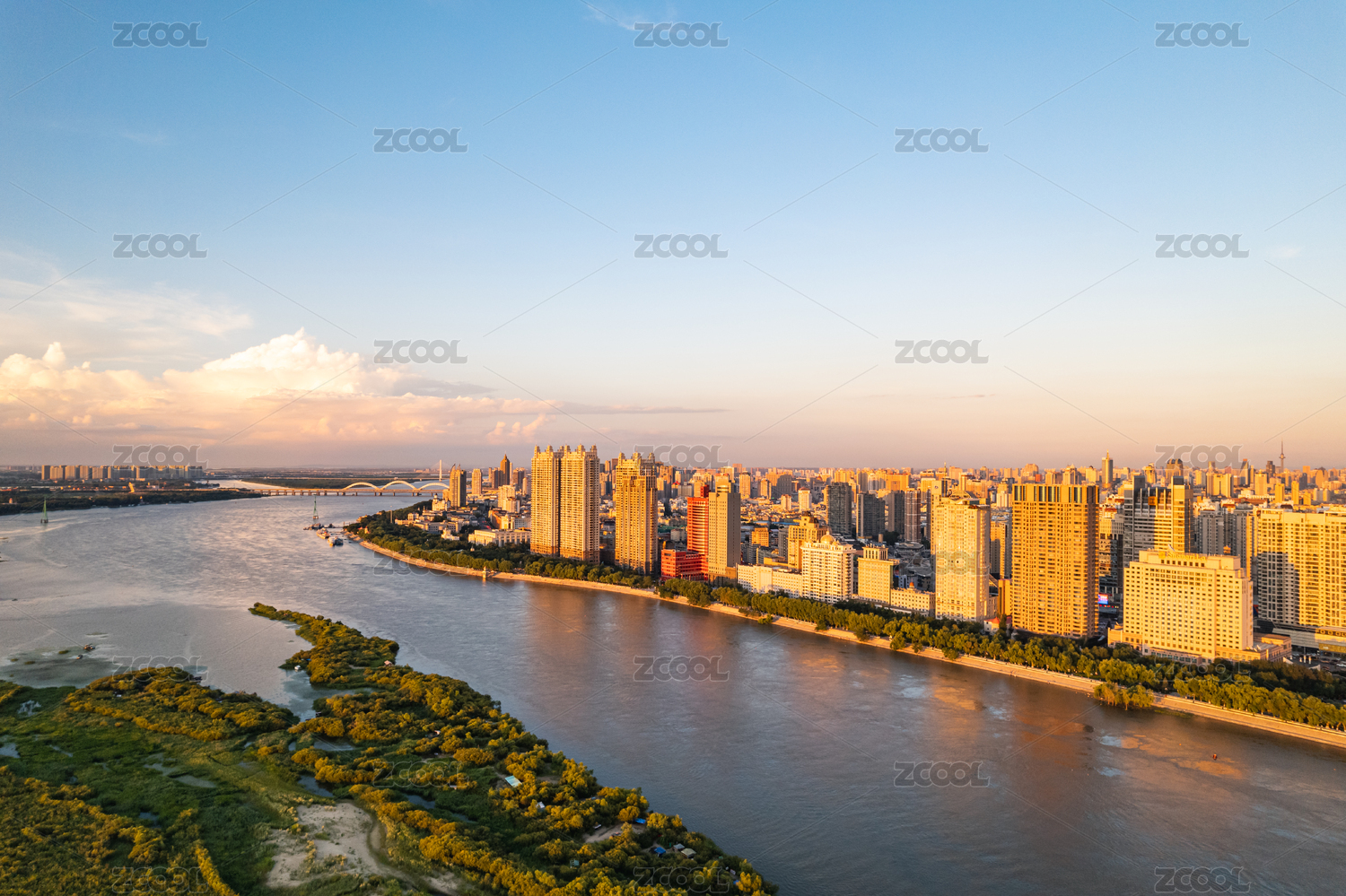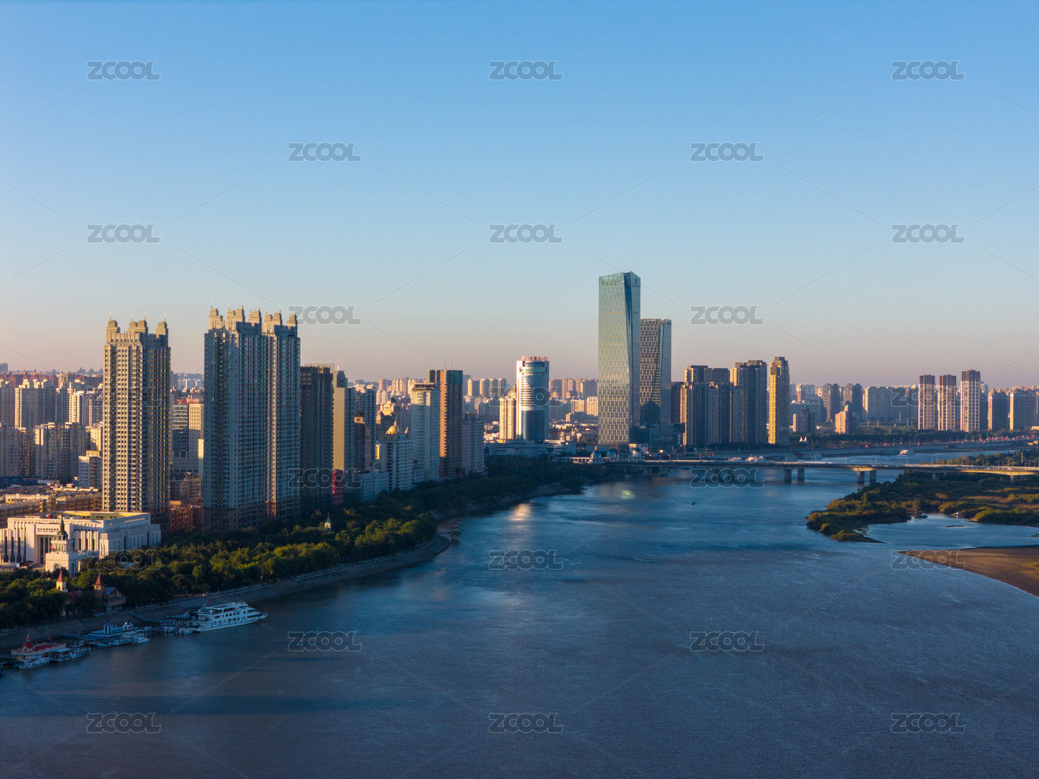 哈尔滨,城市,城市风光,夏天,建筑,晴朗,松花江,现代,科技,航拍