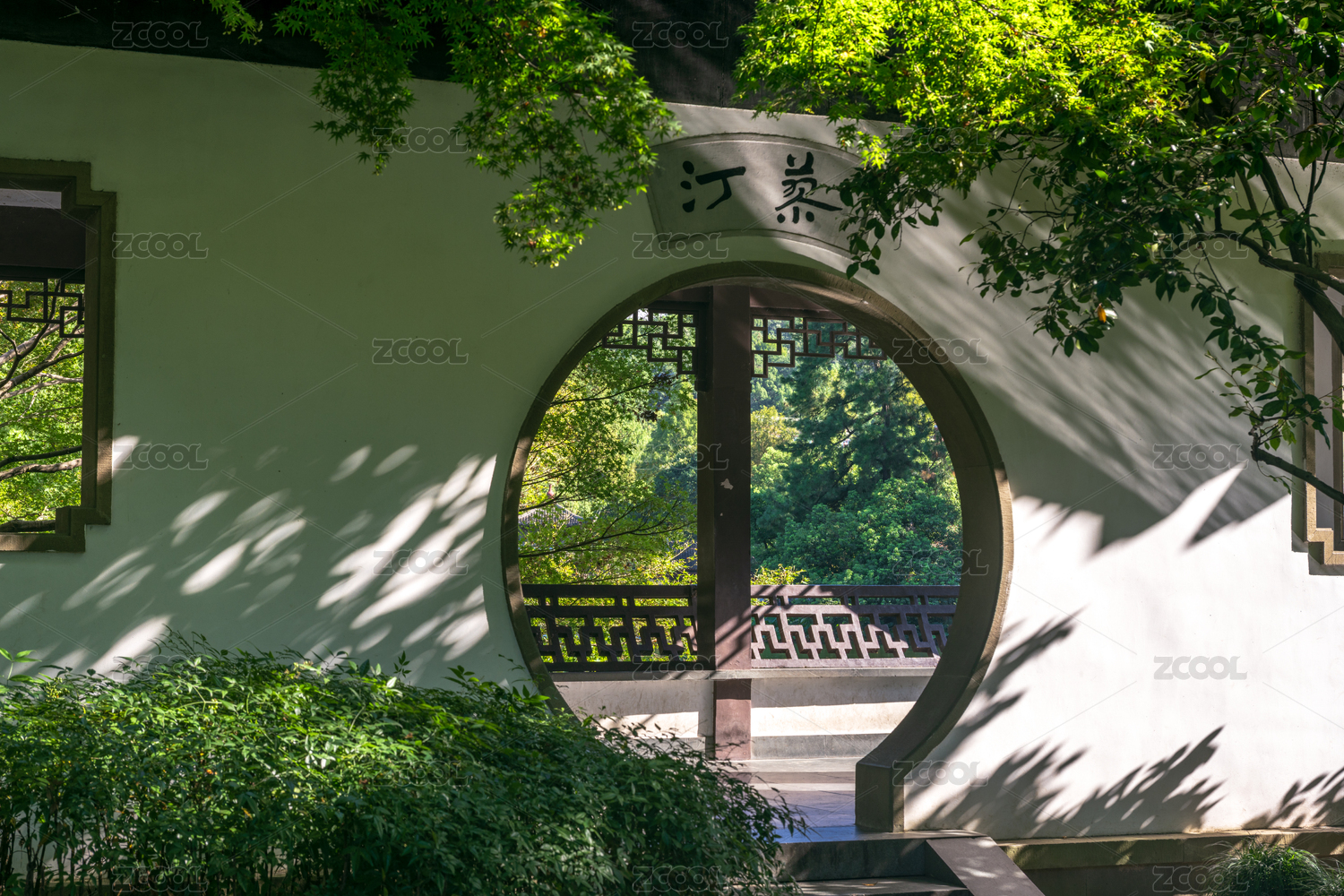 幽静,复古,园林,雕花,镂空,木门,绿植物,古代建筑,庭院,户外