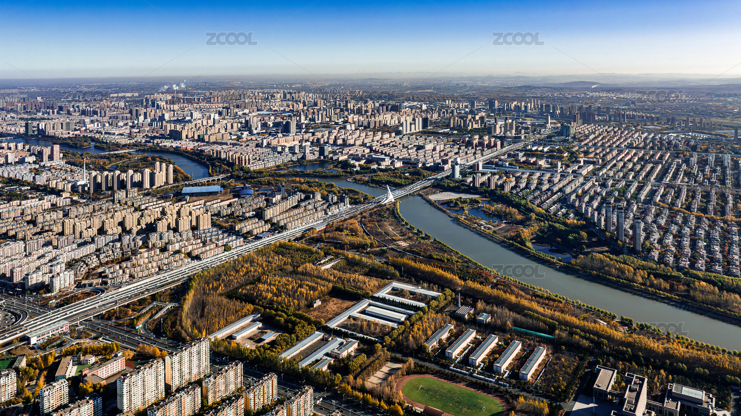中国浙江省杭州市西湖区文二路西溪航拍夕阳