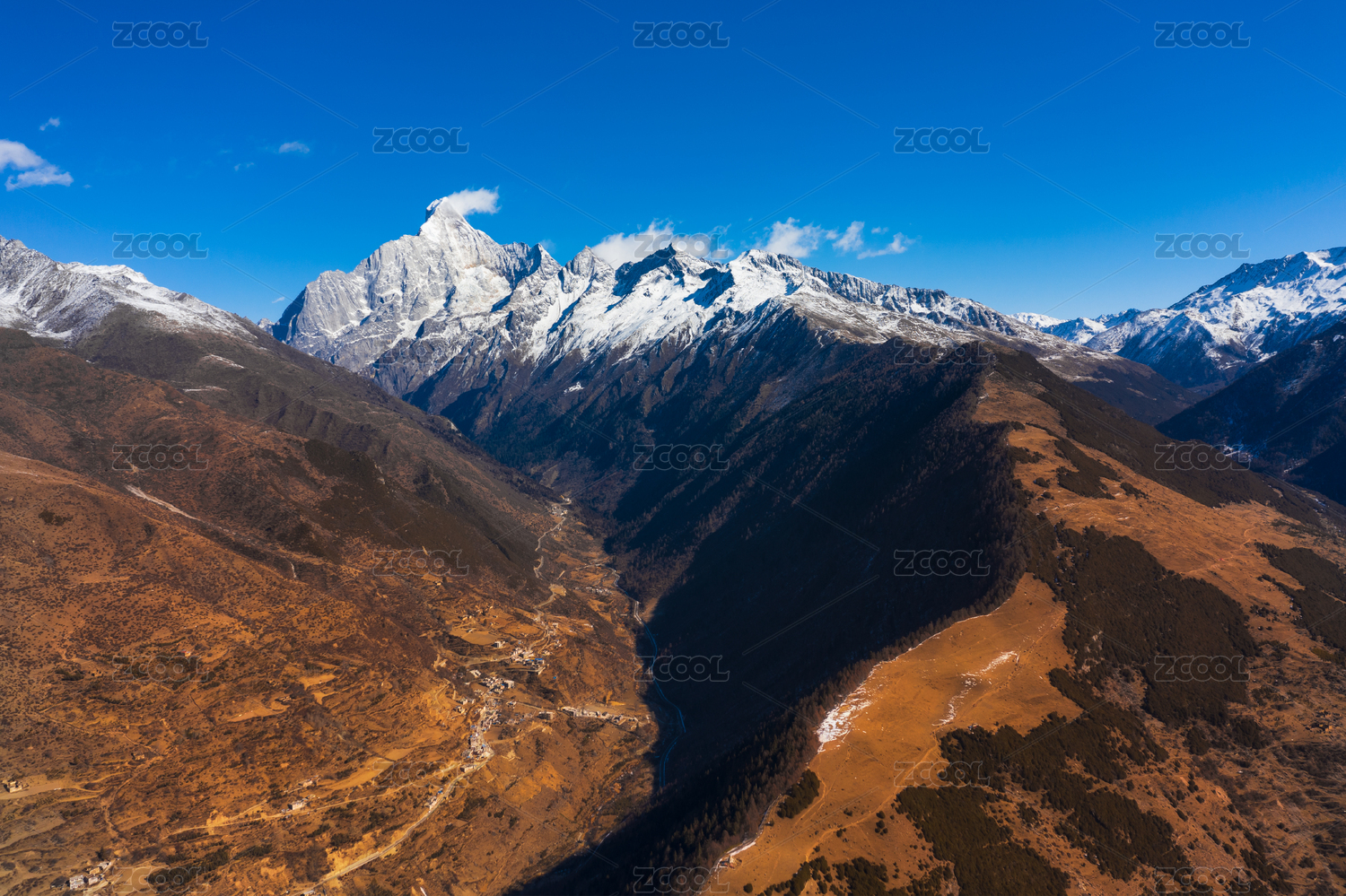 中国四川阿坝州四姑娘山冬季日出航拍风景图