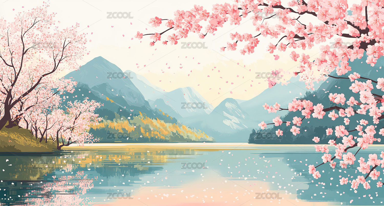 浮世绘,樱花,复古,插画,插图,传统,文化,艺术,风景,背景