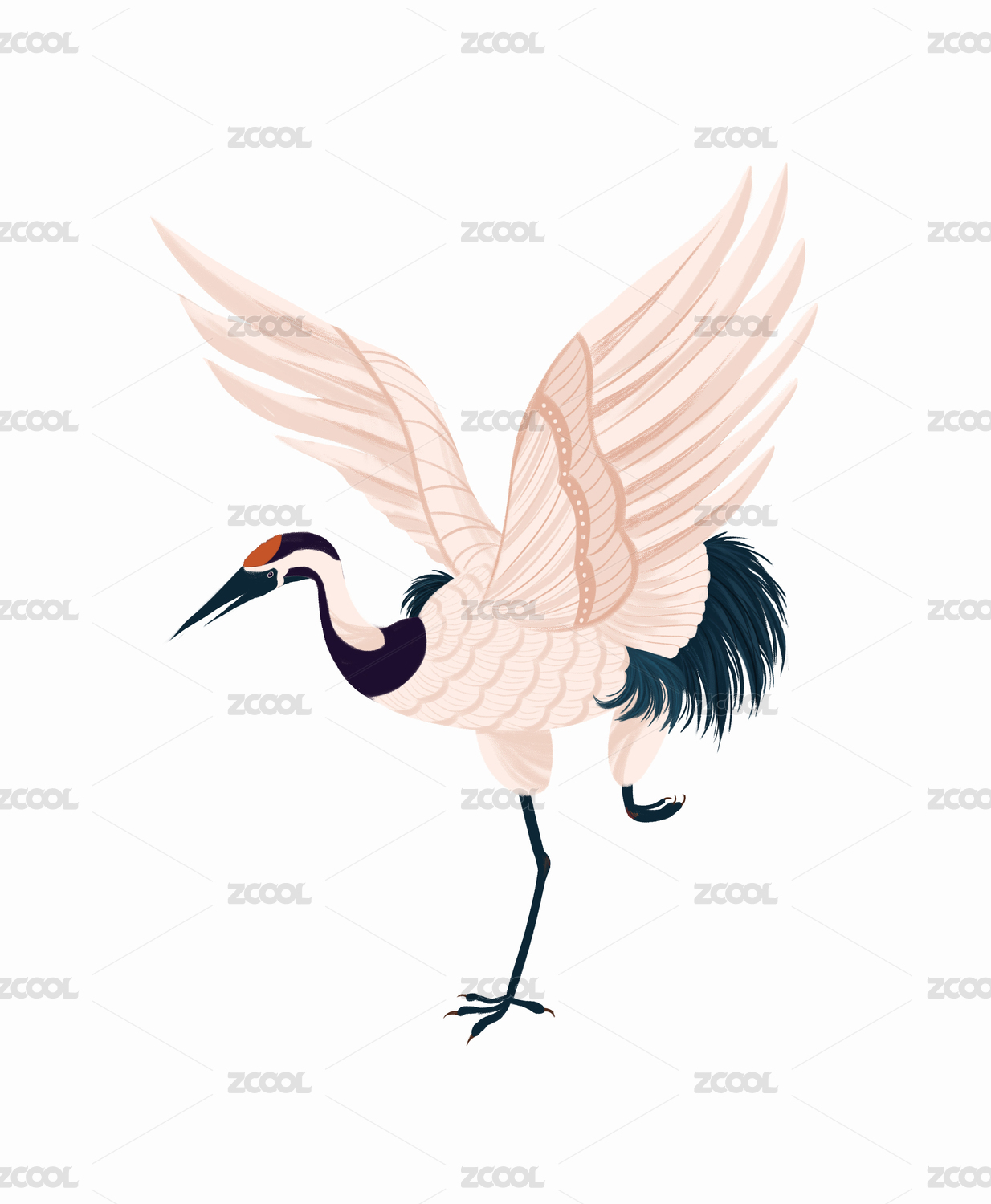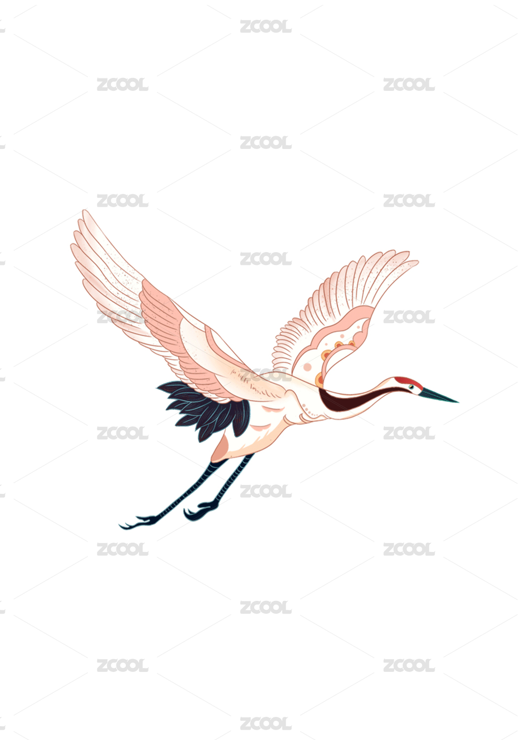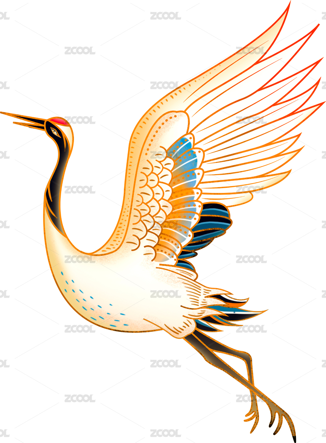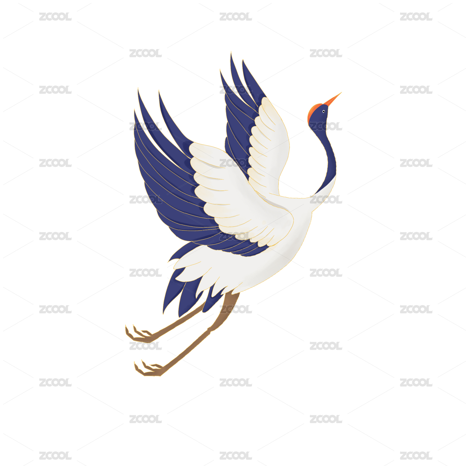 张开翅膀的仙鹤 中国风仙鹤插画元素