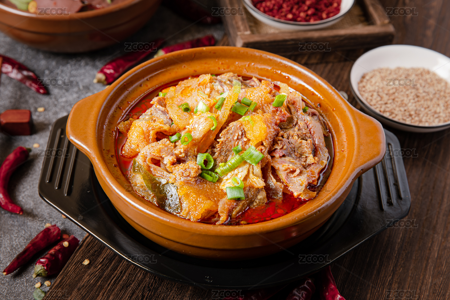 砂锅煮肉片