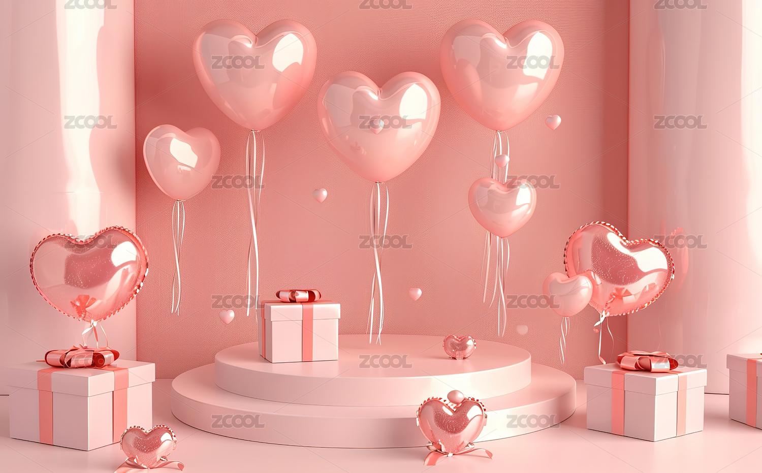 三维浪漫展台 爱心气球与礼物