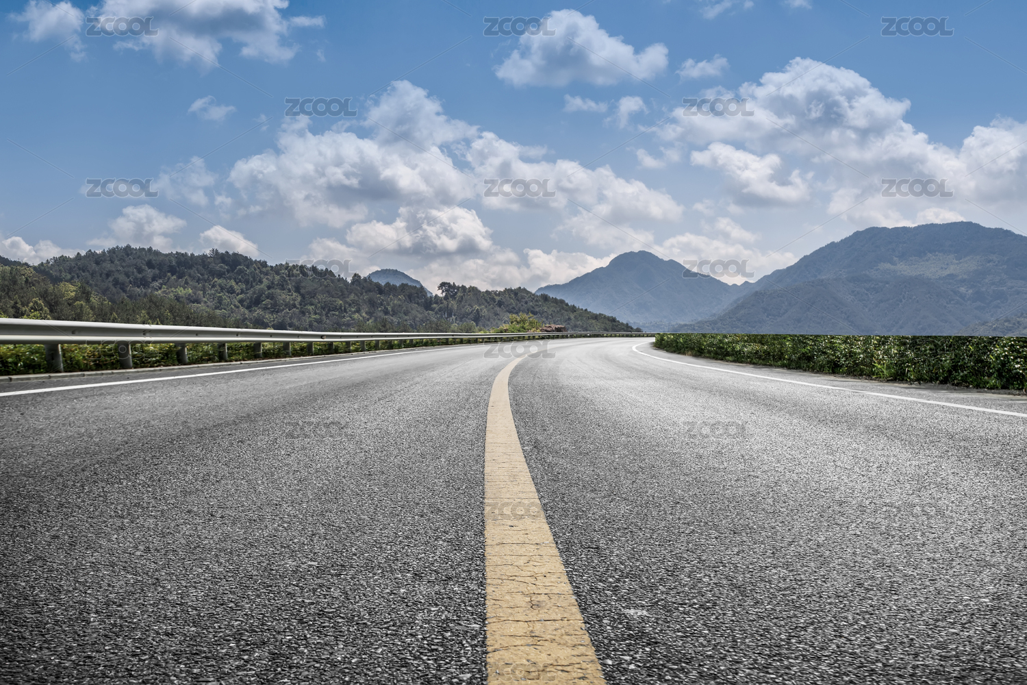 高速公路和远山绿树背景