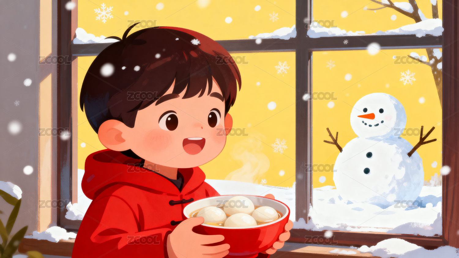腊八节,腊八粥,八宝粥,粥,女孩,甜汤,冬天,窗户,温暖,卡通