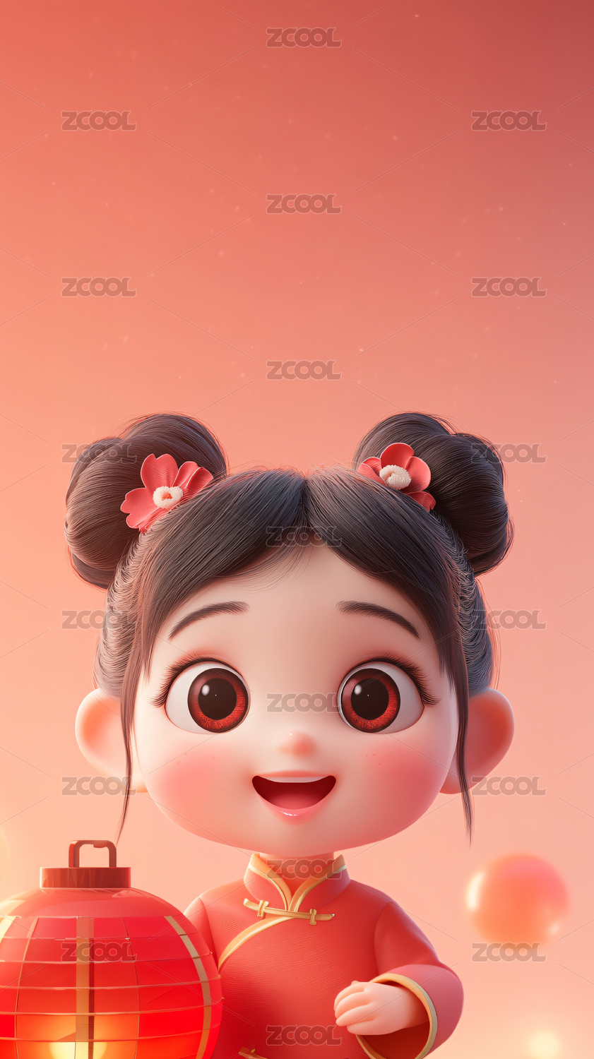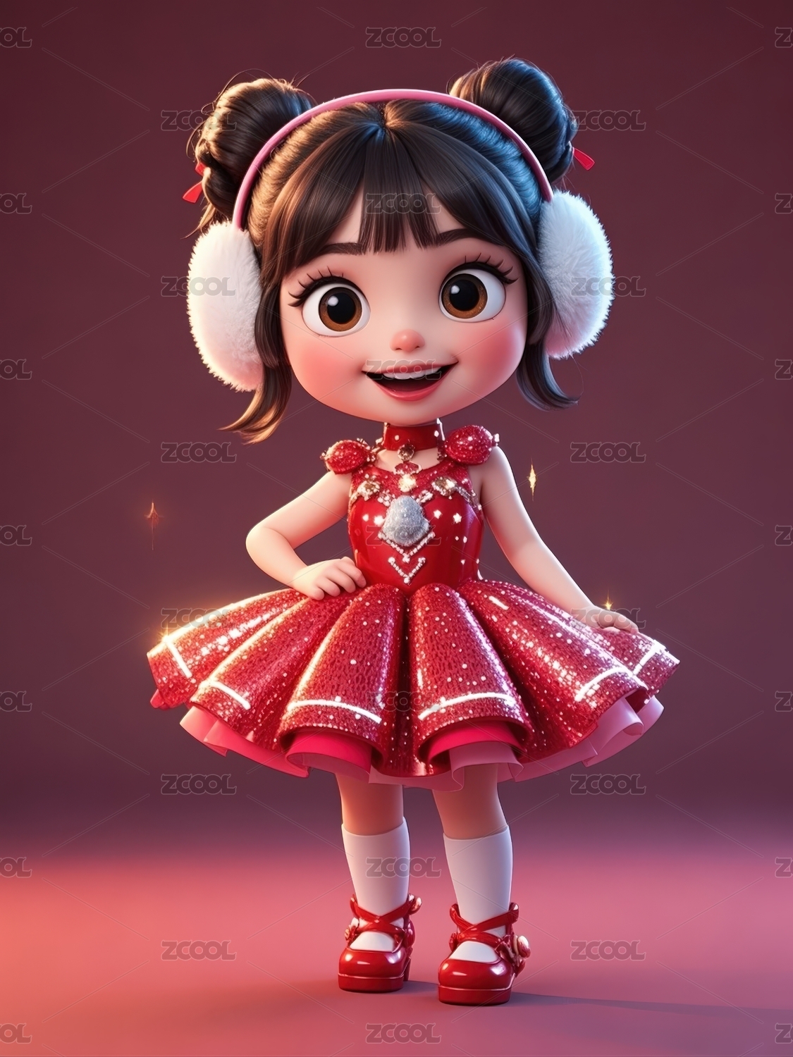 卡通,女孩,红色,喜庆,传统,可爱,笑容,发型,服装,装饰