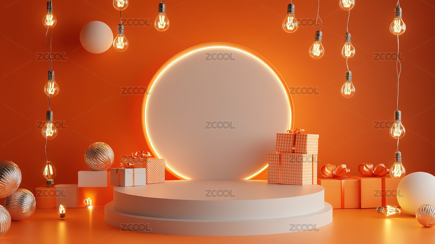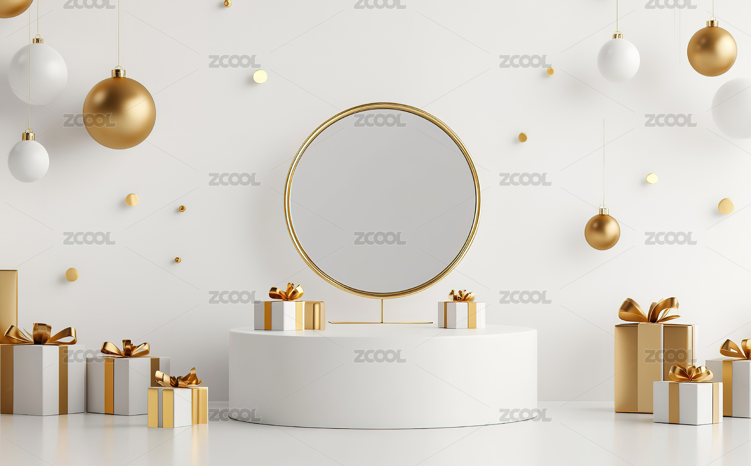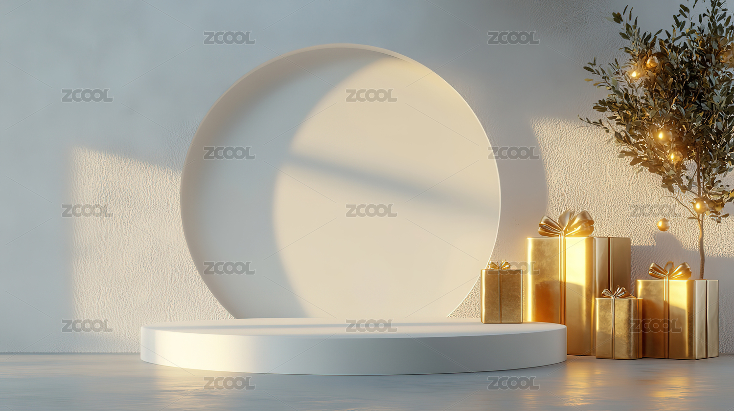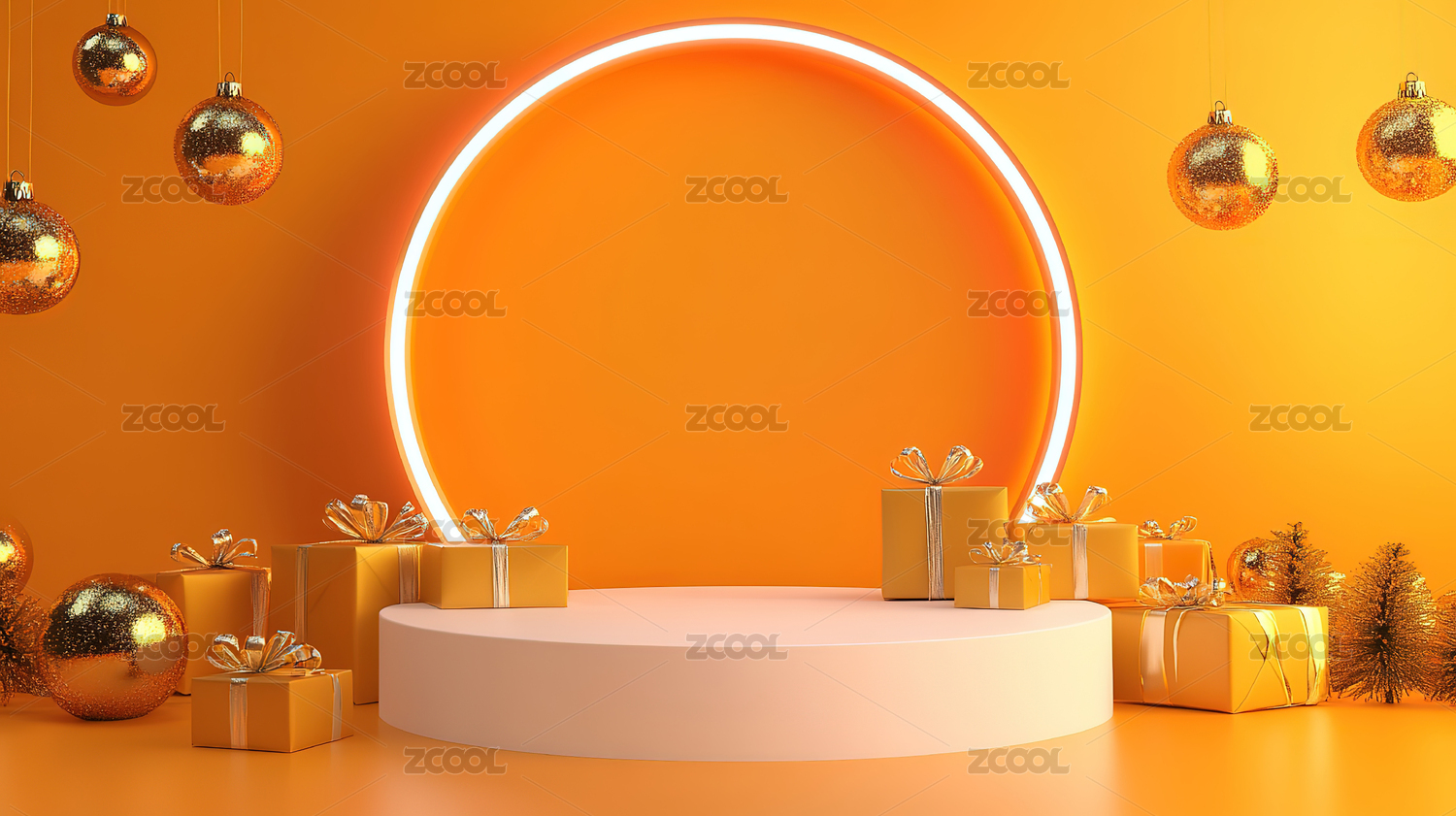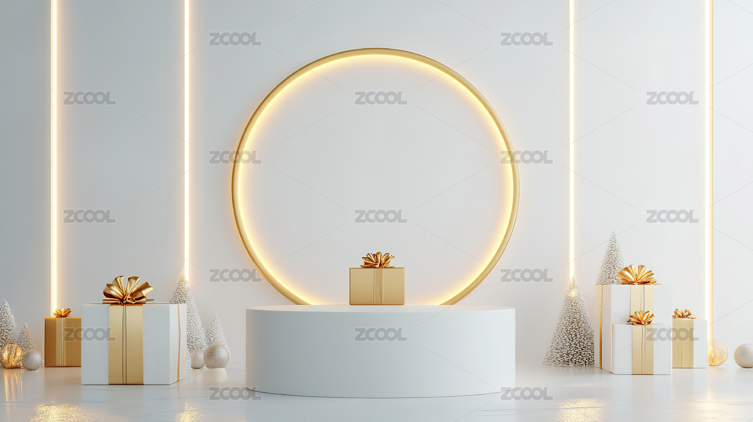 金色圆环与礼盒陈列