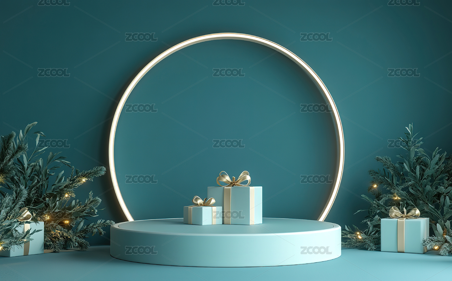 圣诞节蓝金色电商场景