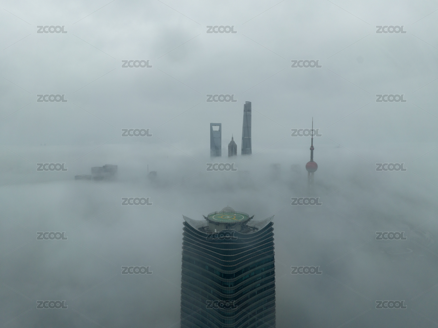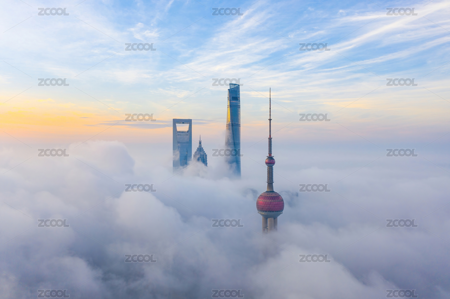 上海城市风景陆家嘴云上俯瞰丁达尔光
