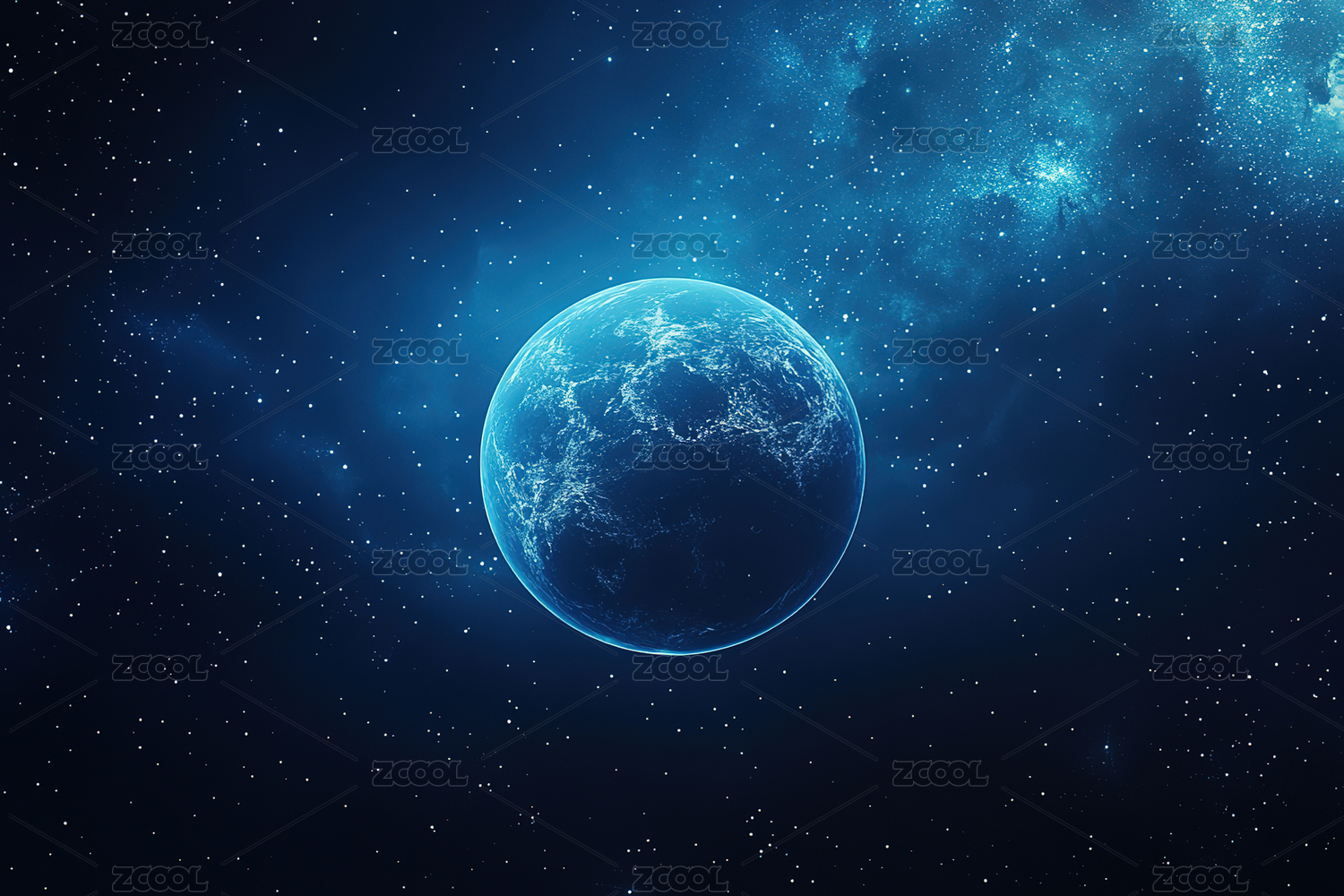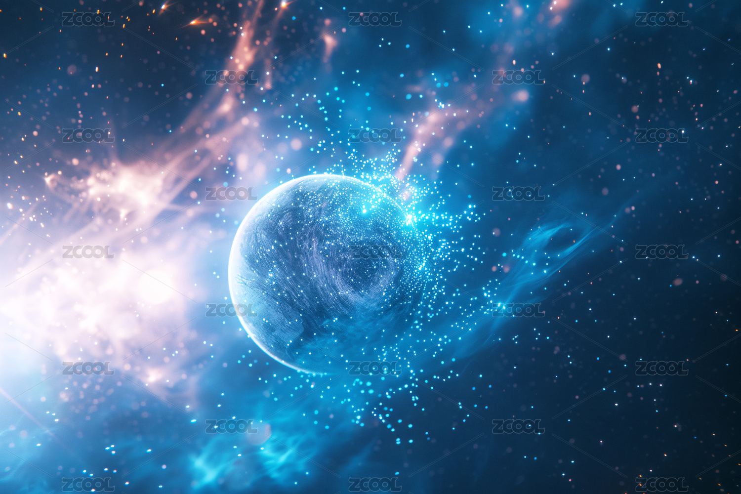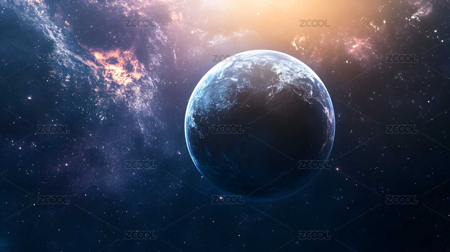 深邃宇宙星云环绕星球,璀璨城市灯光闪耀