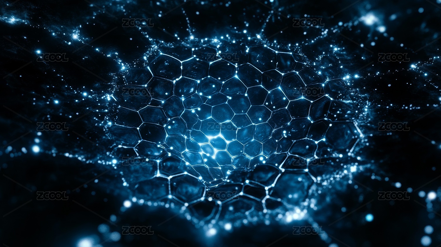 蓝色发光圆形结构与光点的未来感
