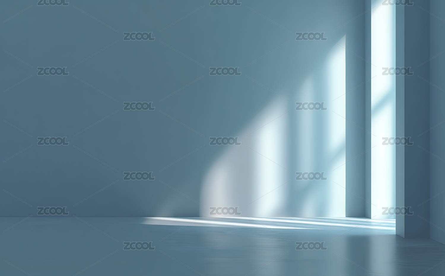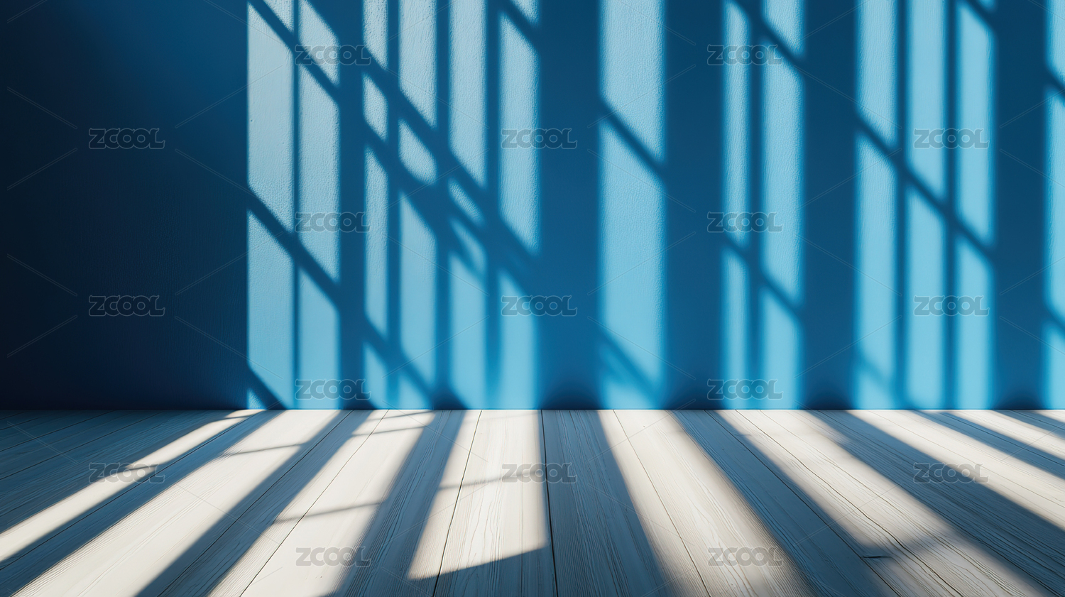 室内蓝色墙面阳光照射