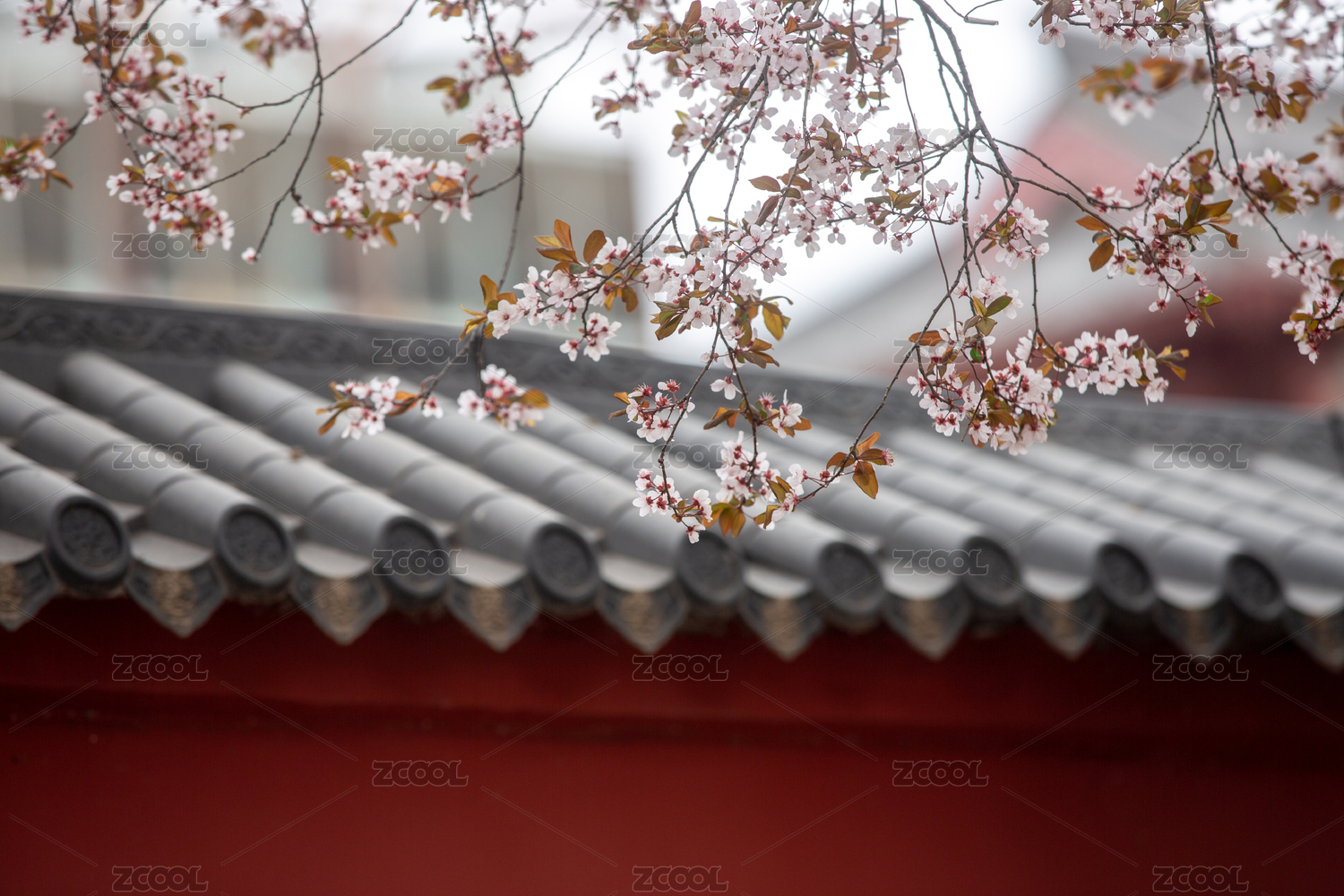 中式庭院里的樱花树