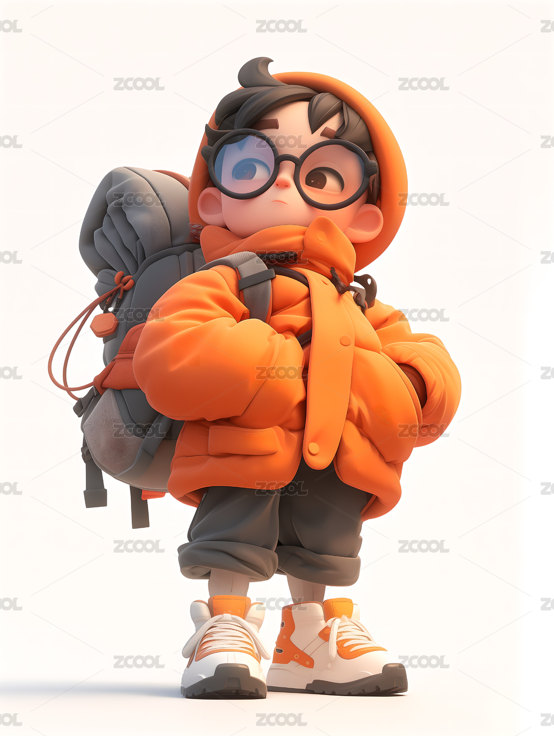 3D卡通可爱背着背包的探险家男孩