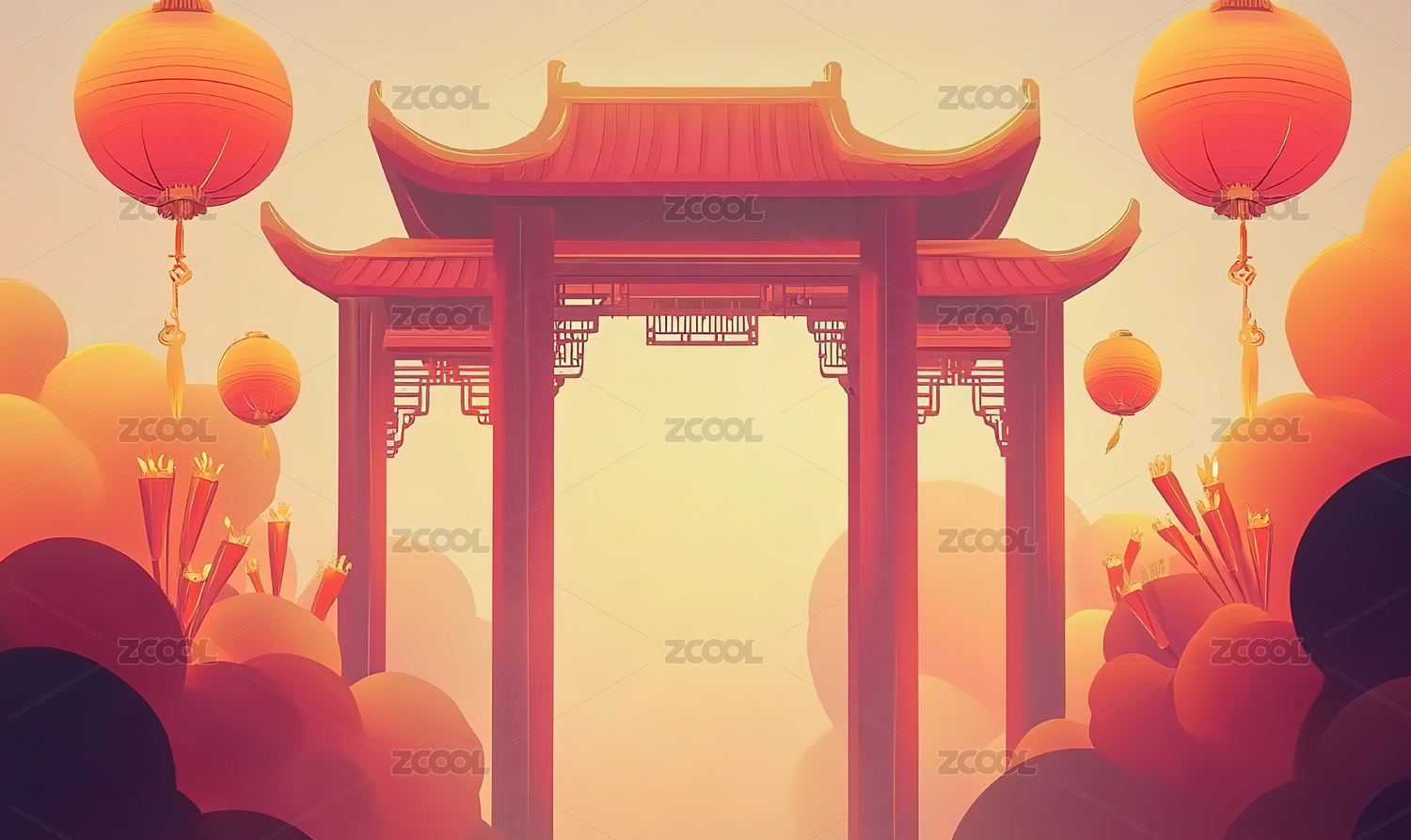 祥云,国潮,国风,新中式,插画,福字,牌坊,牌楼,中国,传统