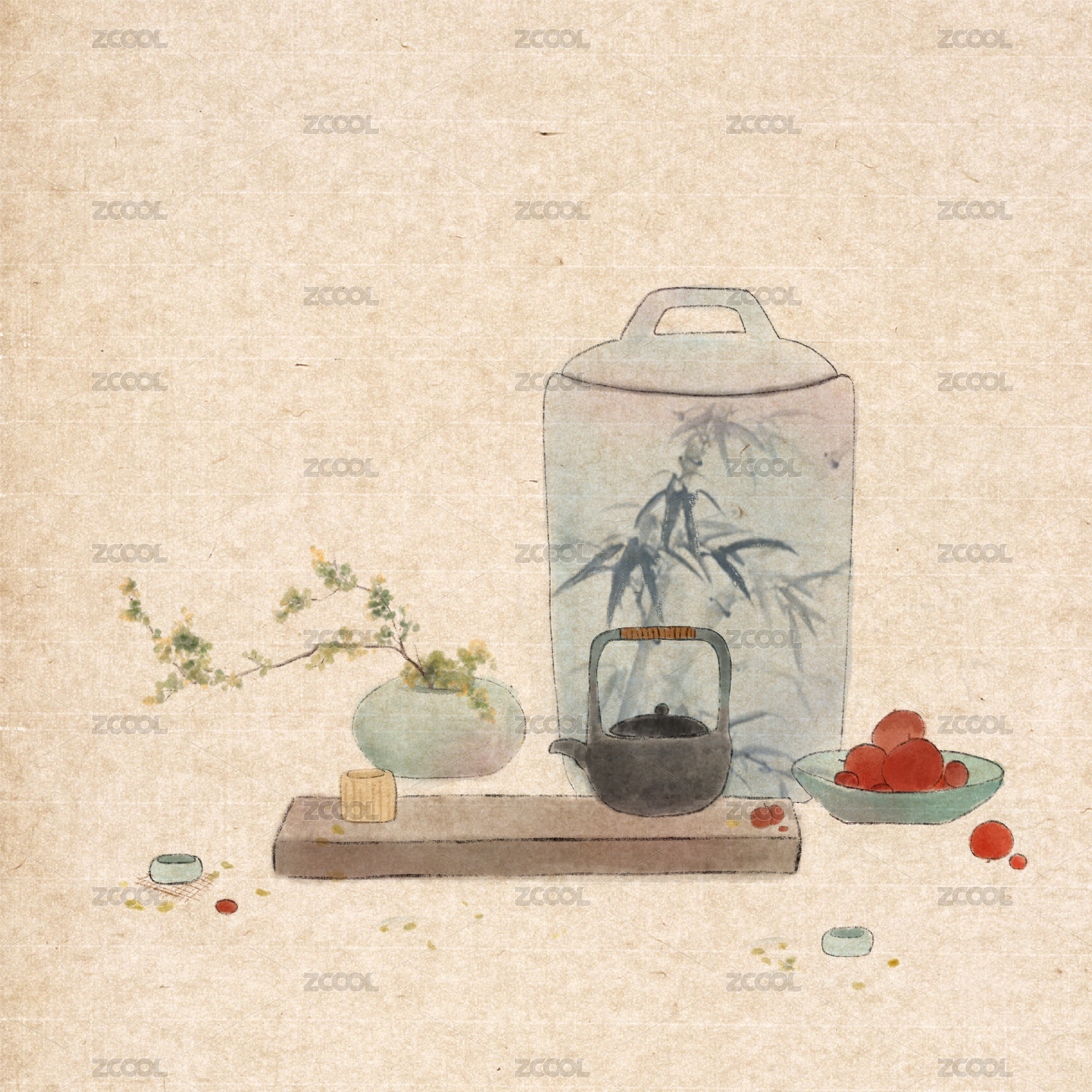 古风物件国潮国风插画