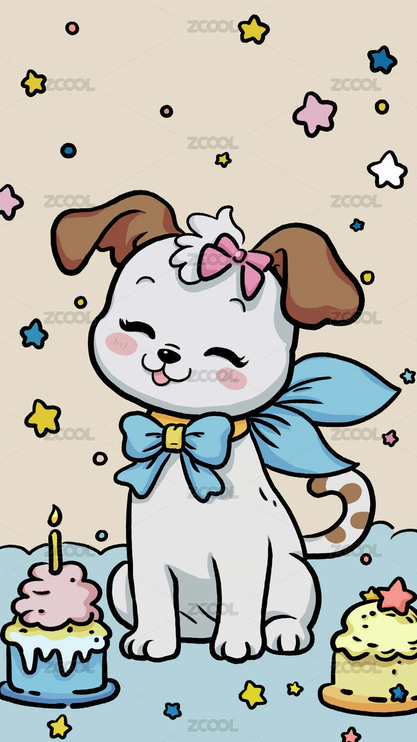 庆祝生日,线条插画,狗狗,狗狗过生日,生日插画