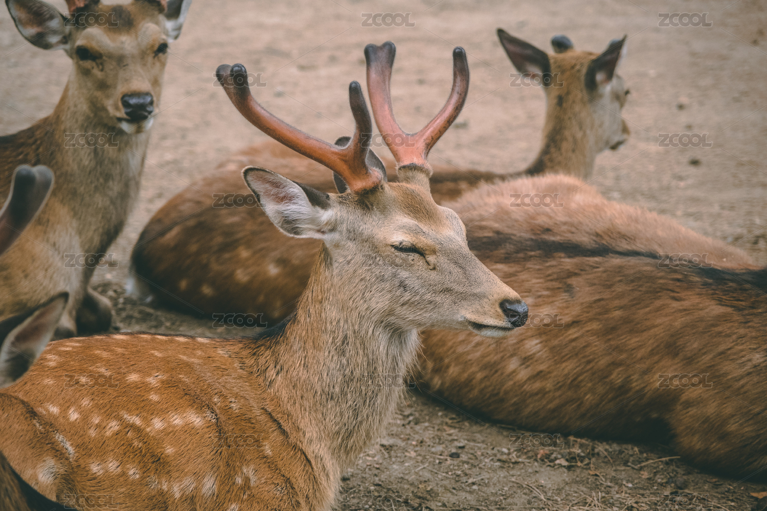 中国内蒙古兴安盟一群正在草地休息的梅花鹿