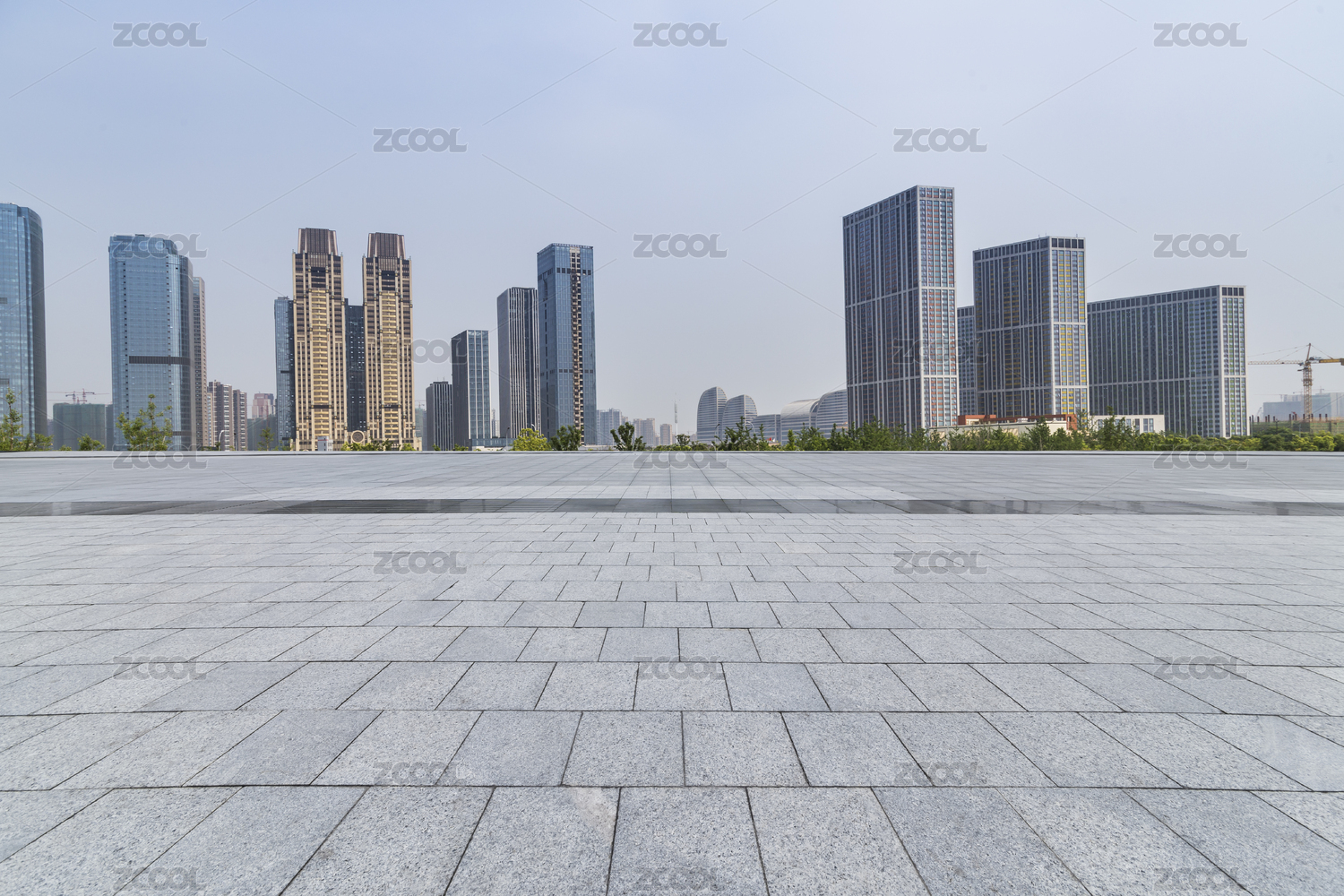 现代城市天际线与空旷路面