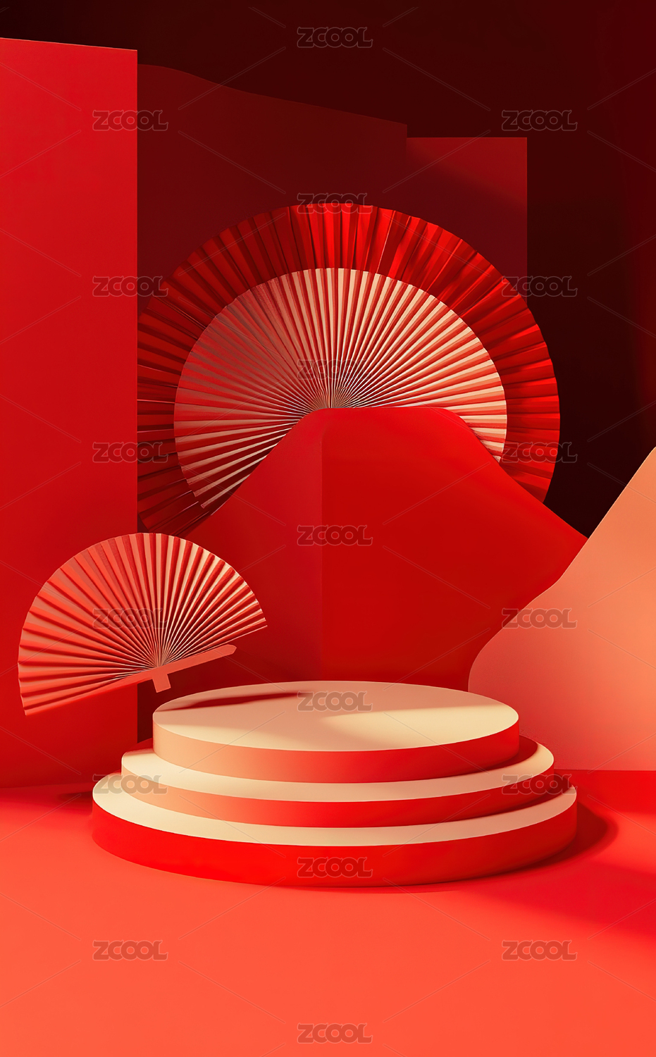 红色背景下的红色折扇