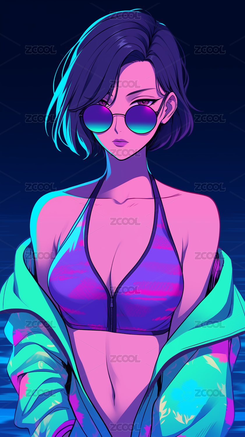 手绘,卡通,唯美,插画,夏日,泳装,女孩,可爱,漂亮,女人