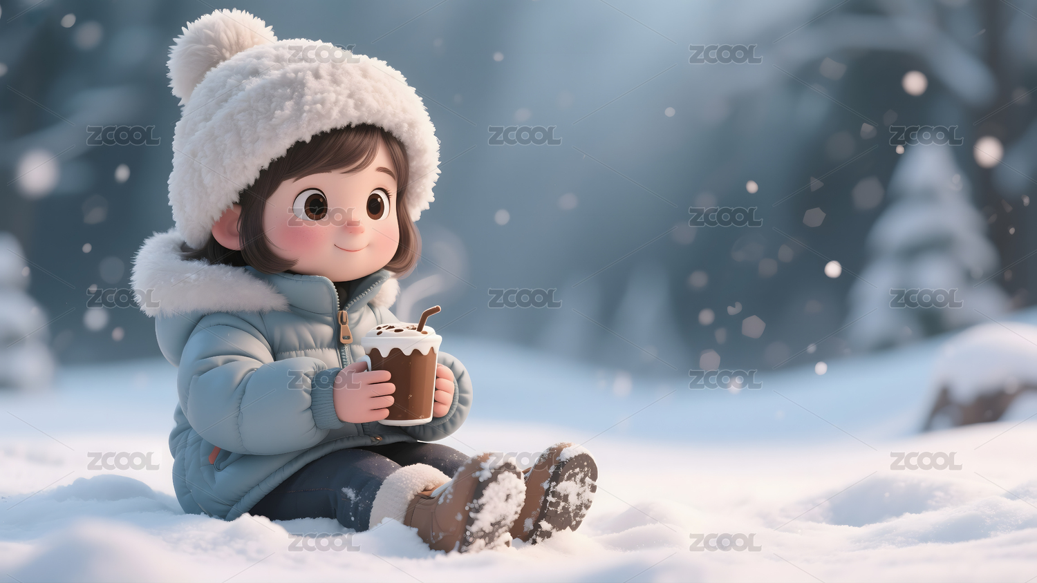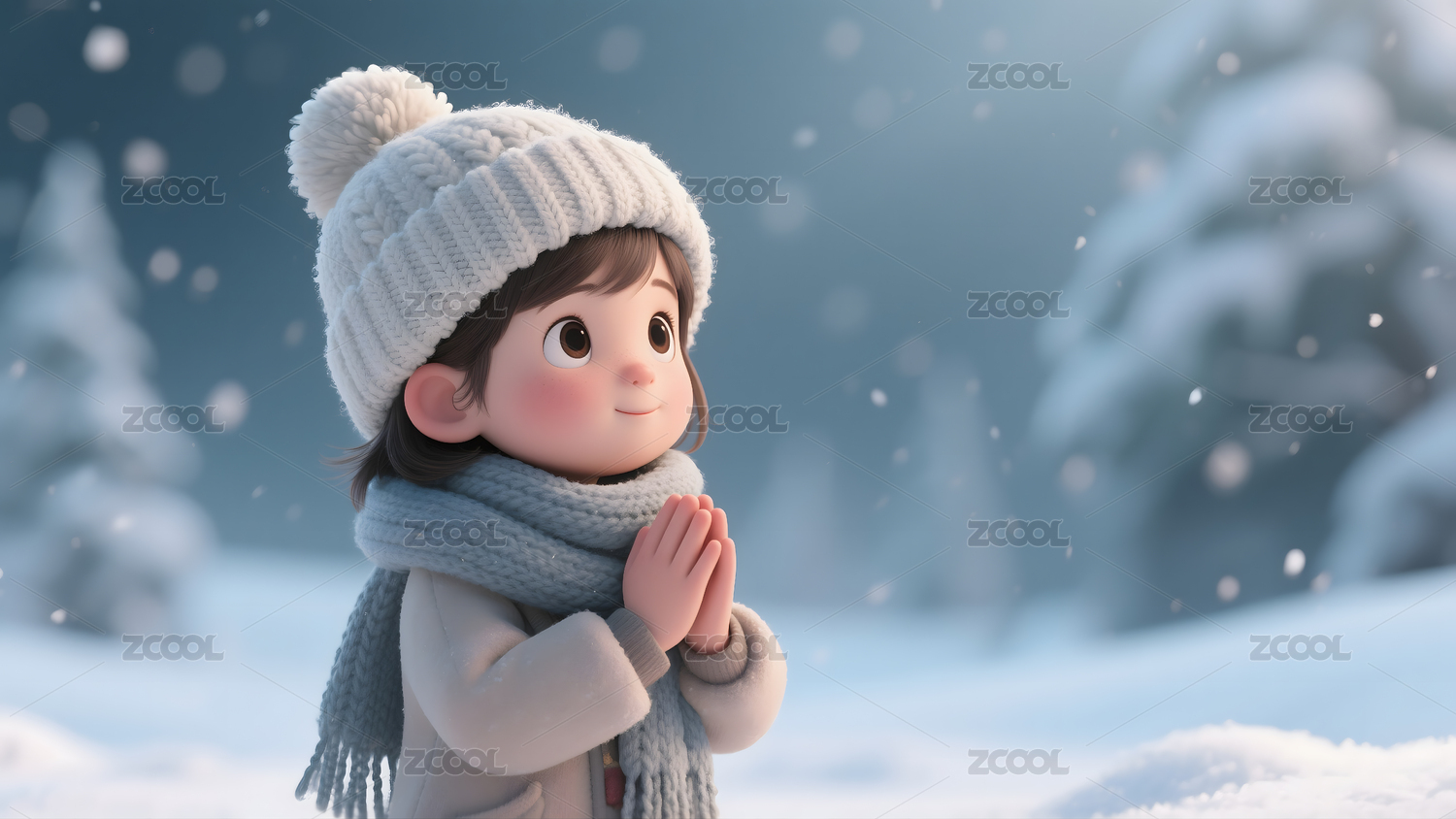 冰雪女孩快乐滑冰冬季童趣蓝白系