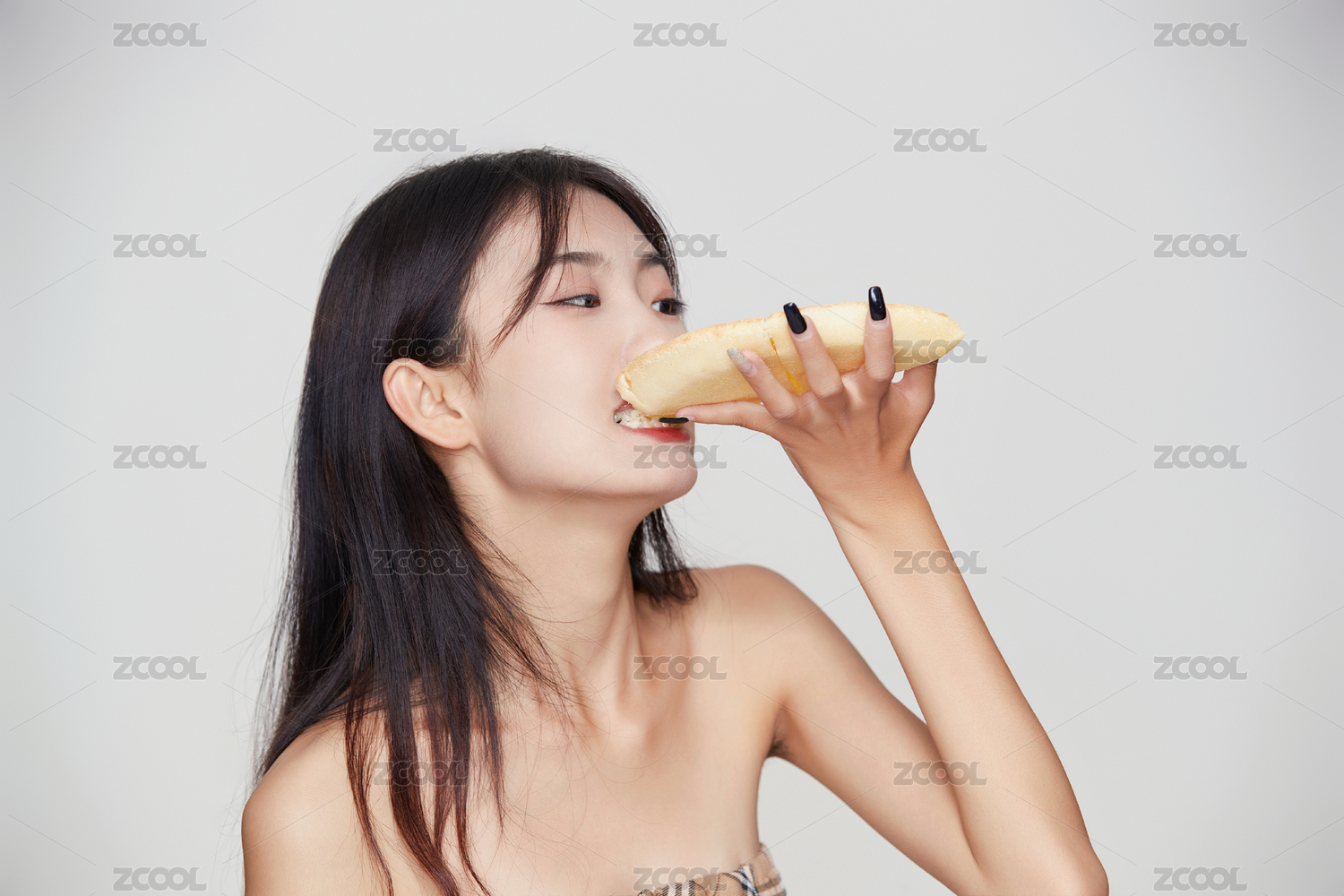 大吃特吃猪蹄块的亚洲可爱少女人像