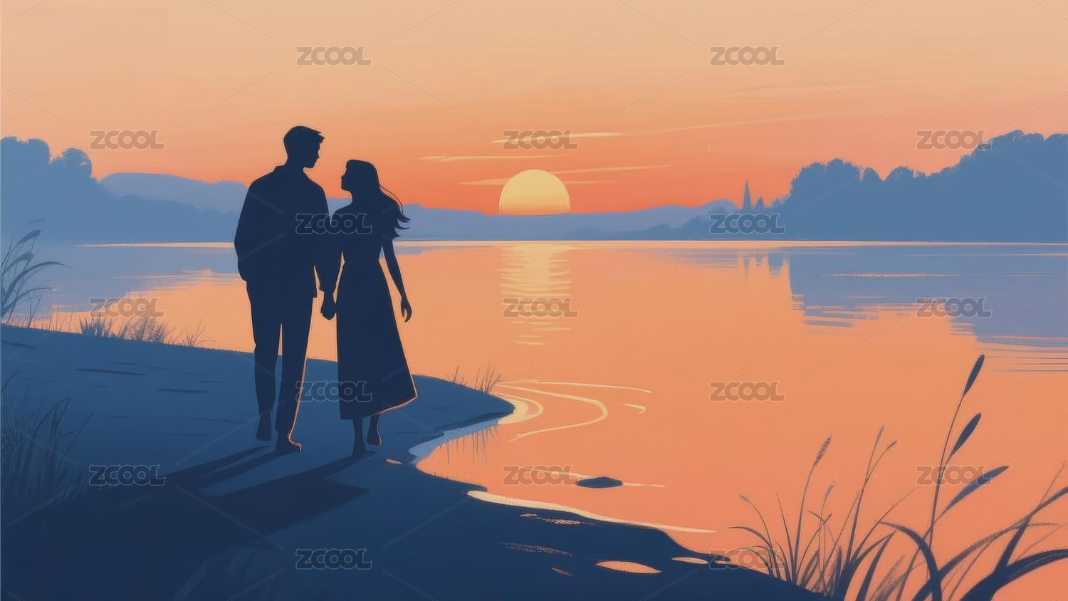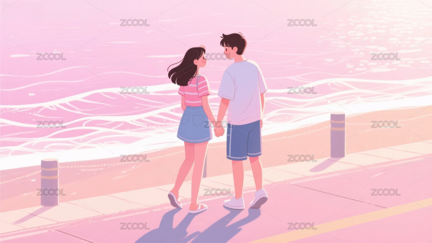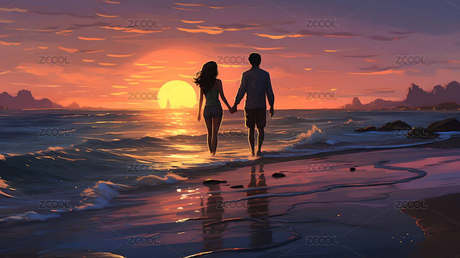 情侣,海滩,散步,牵手,宁静,温馨,背影,海浪,沙滩,浪漫