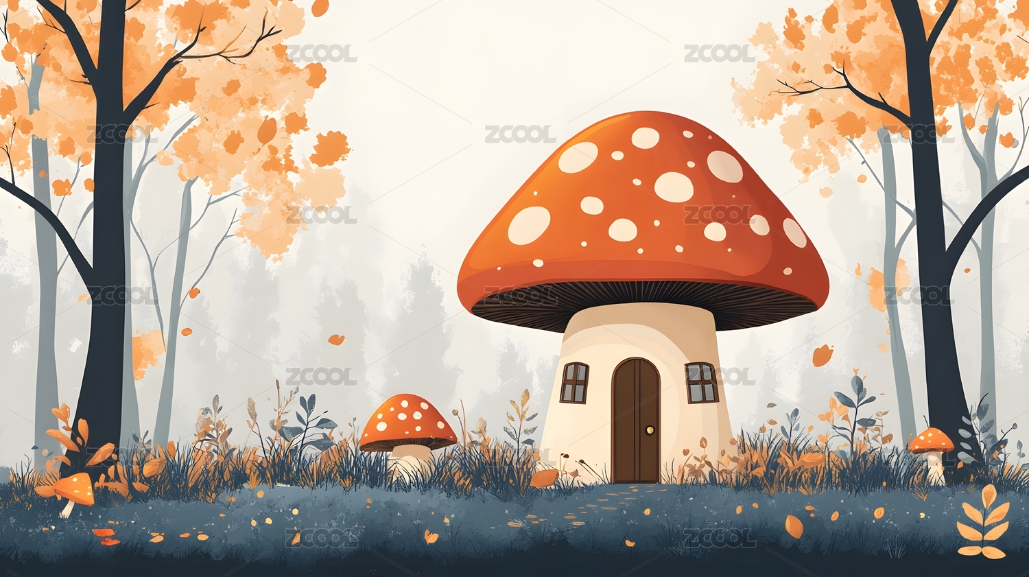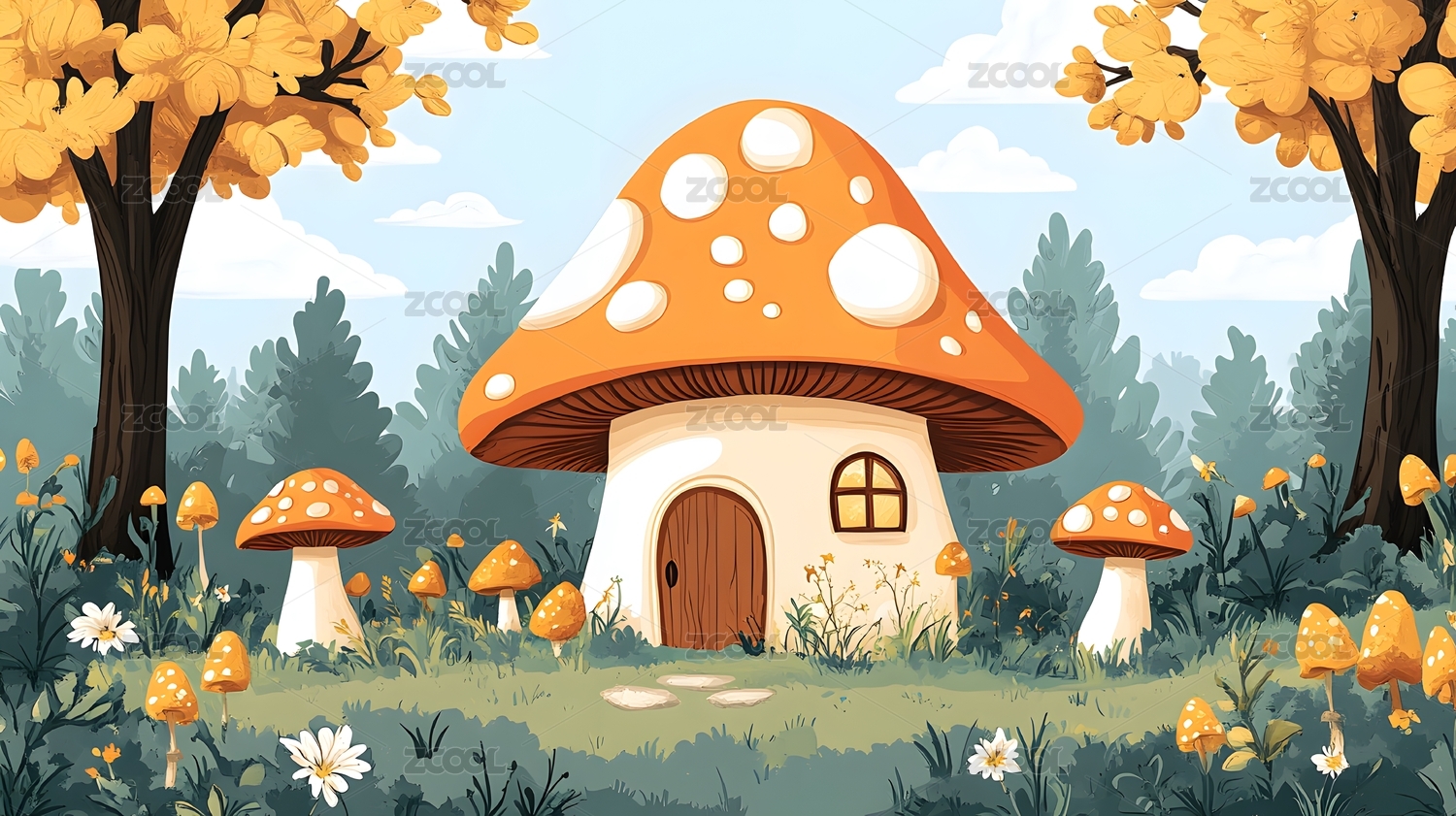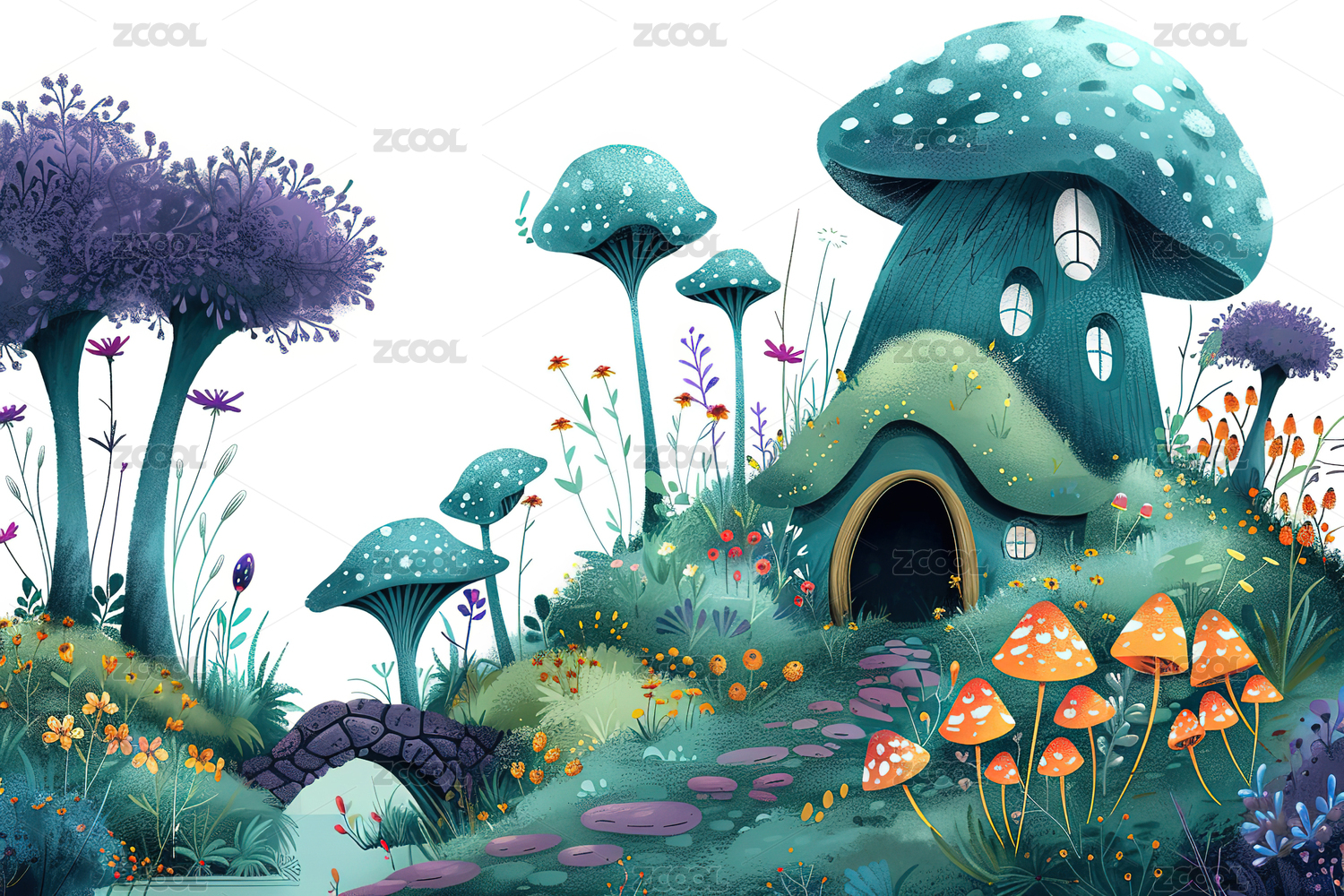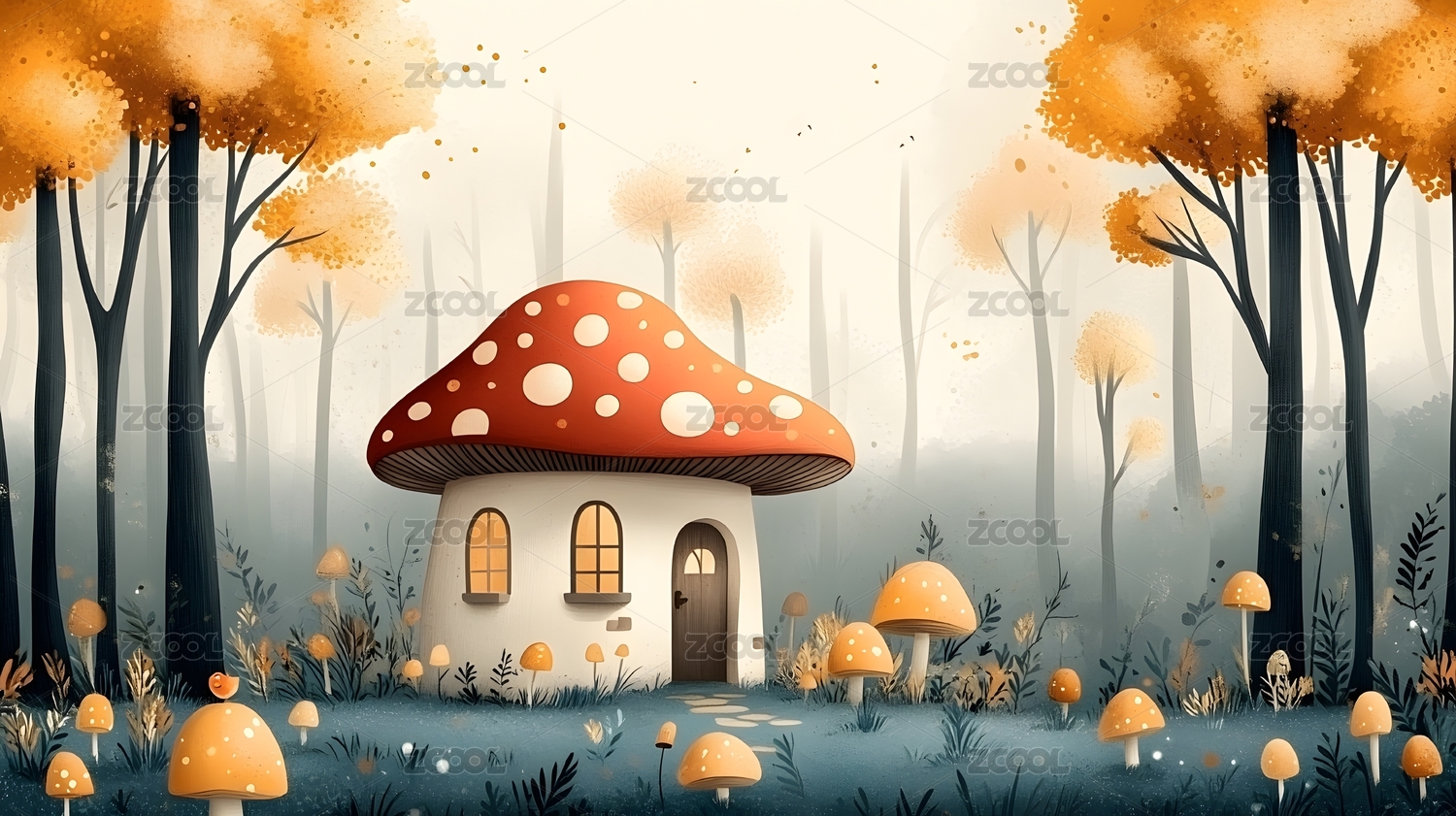 蘑菇屋,童话,森林,梦幻,卡通,可爱,房子,小屋,树木,树叶
