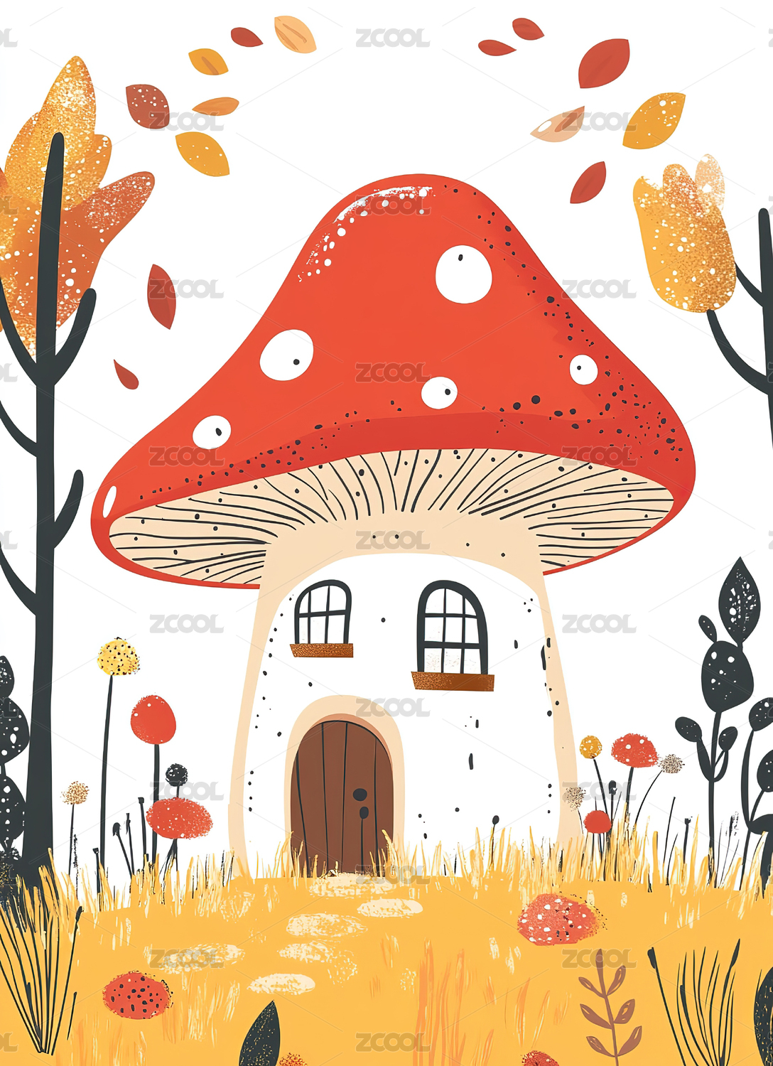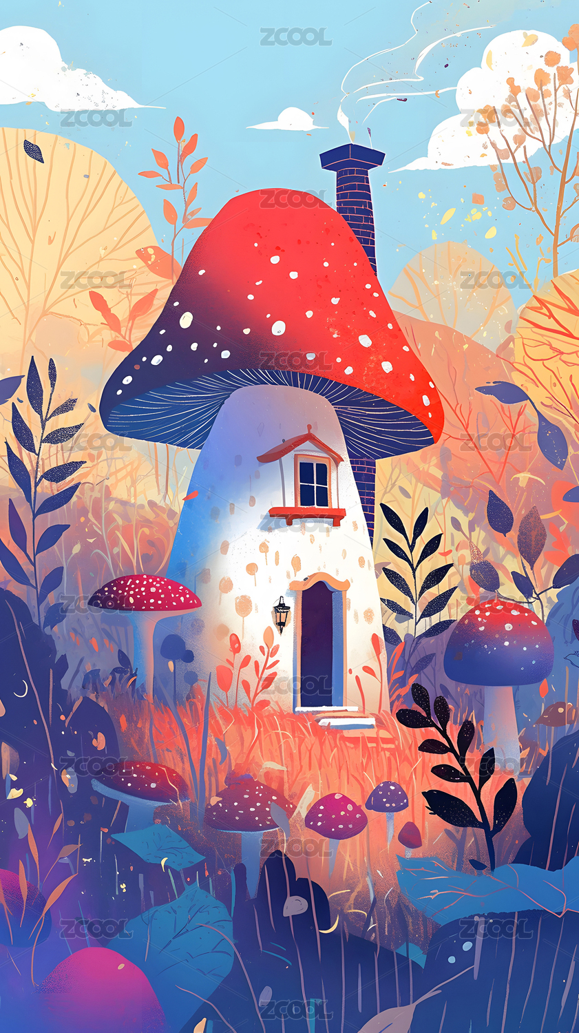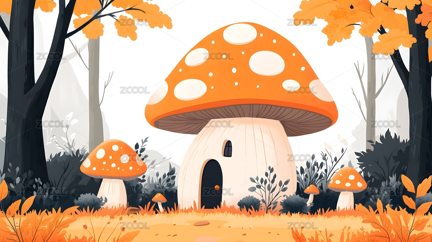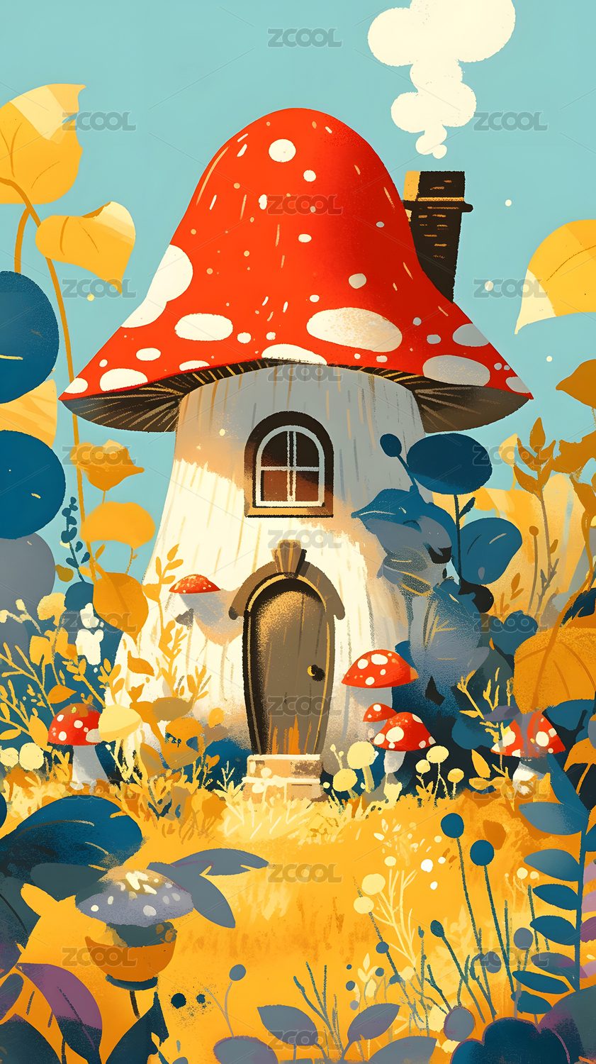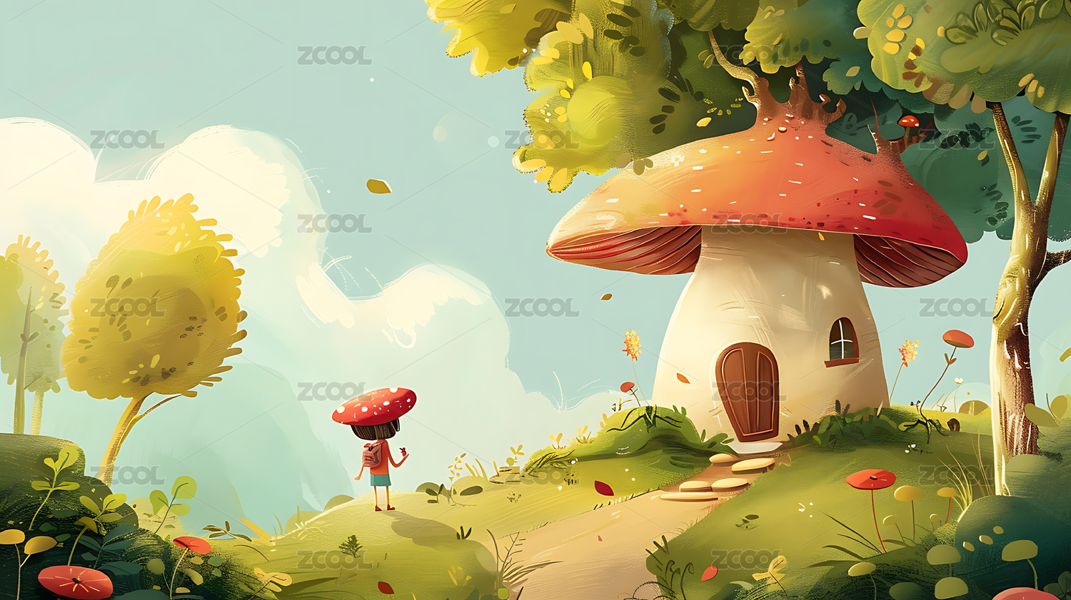 蘑菇屋,童话,森林,梦幻,卡通,可爱,房子,小屋,树木,树叶