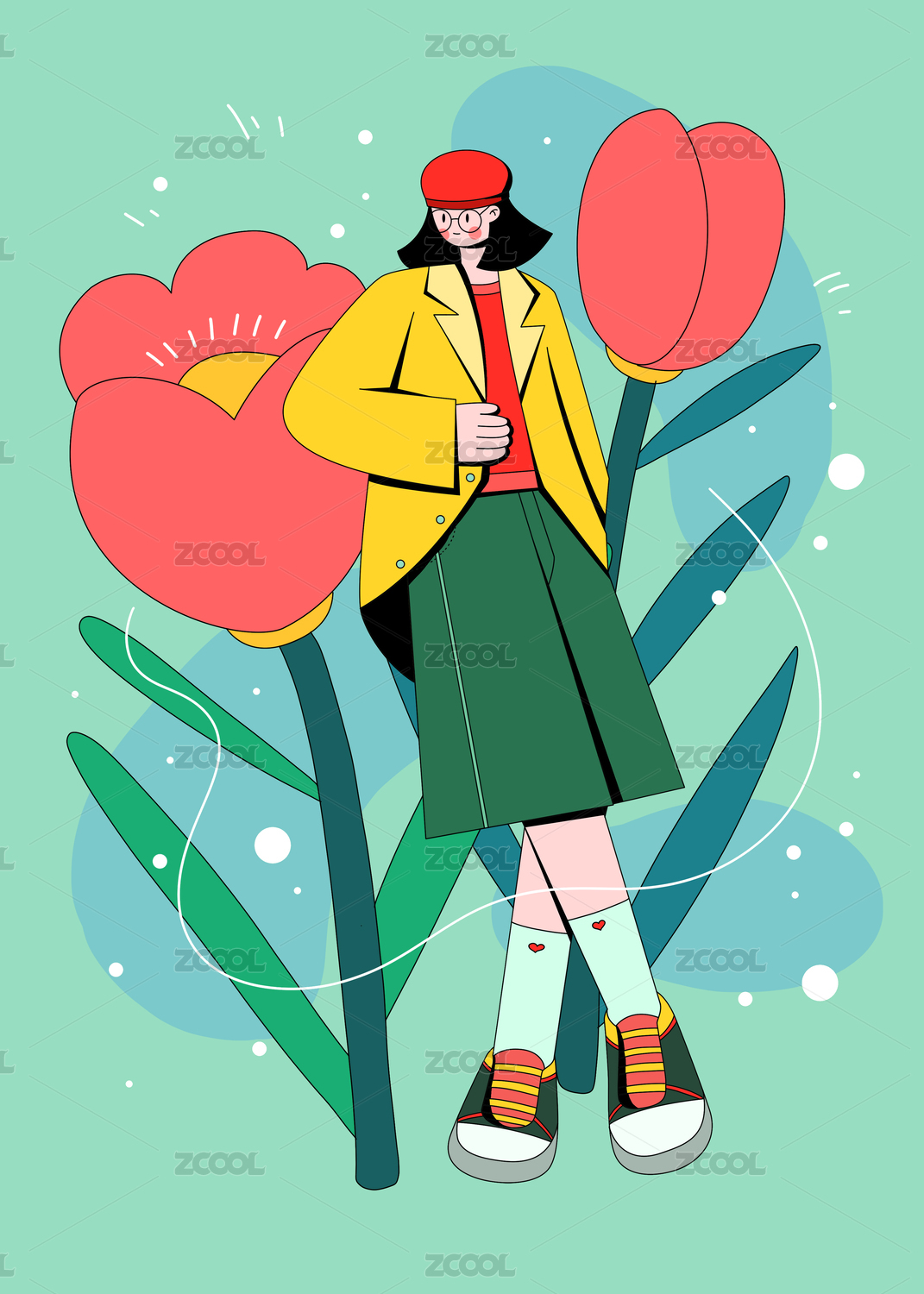 三八妇女节女神节花海少女鲜花浪漫唯美小清