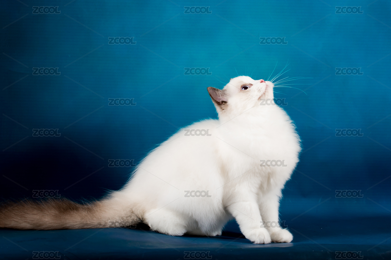 蓝色背景上的重点色暹罗宠物猫摄影图