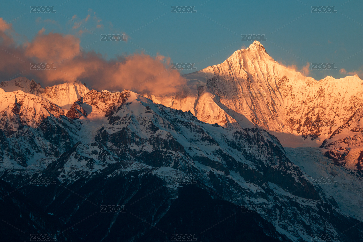 素材,背景,雪山,地形,山脉,横断山脉,梅里雪山,日照,光影,天空