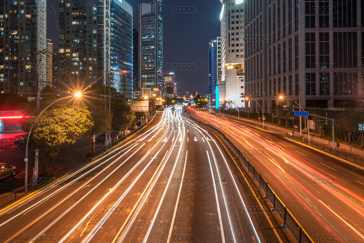 上海城市夜景飞驰的汽车尾灯形成的光的轨迹