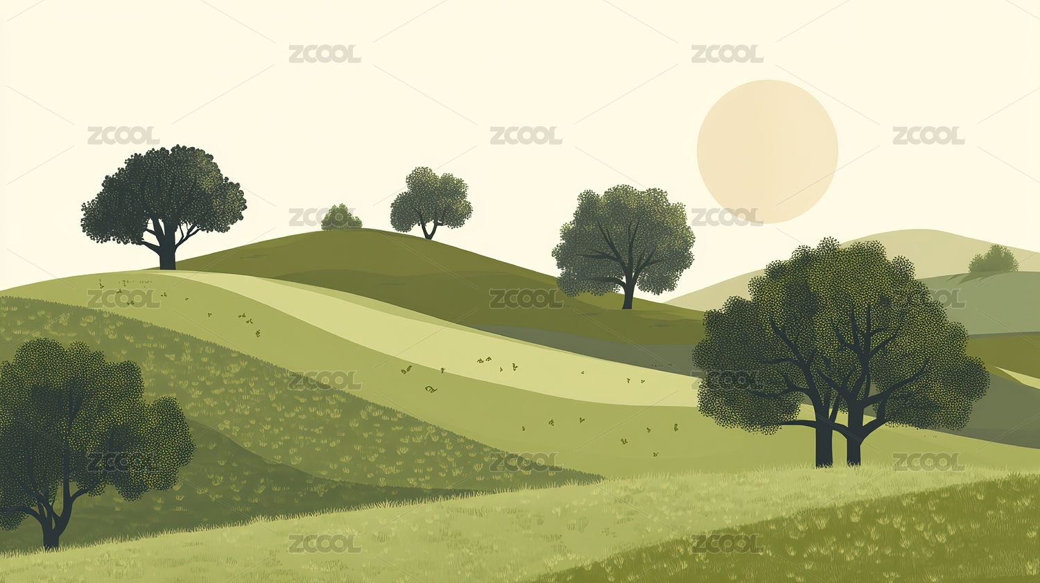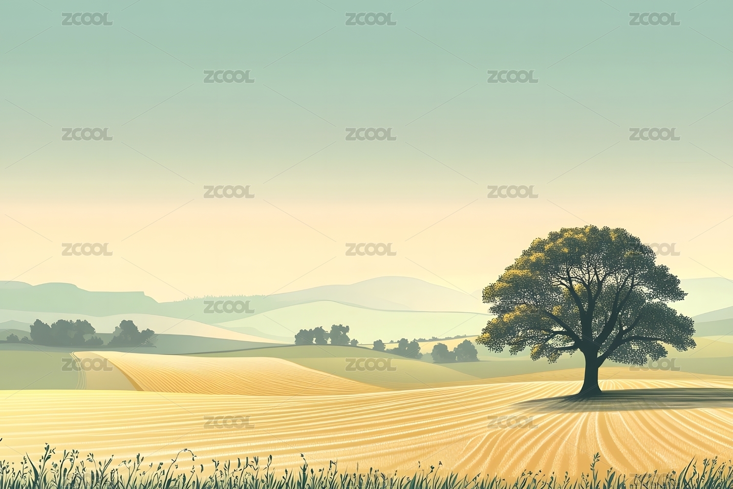 唯美自然田园风景插画