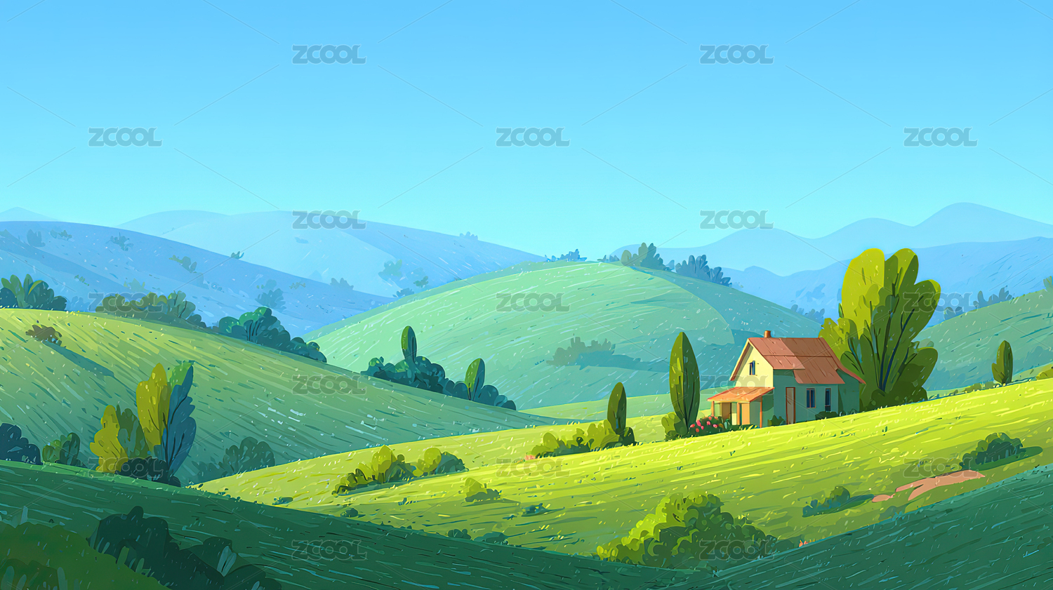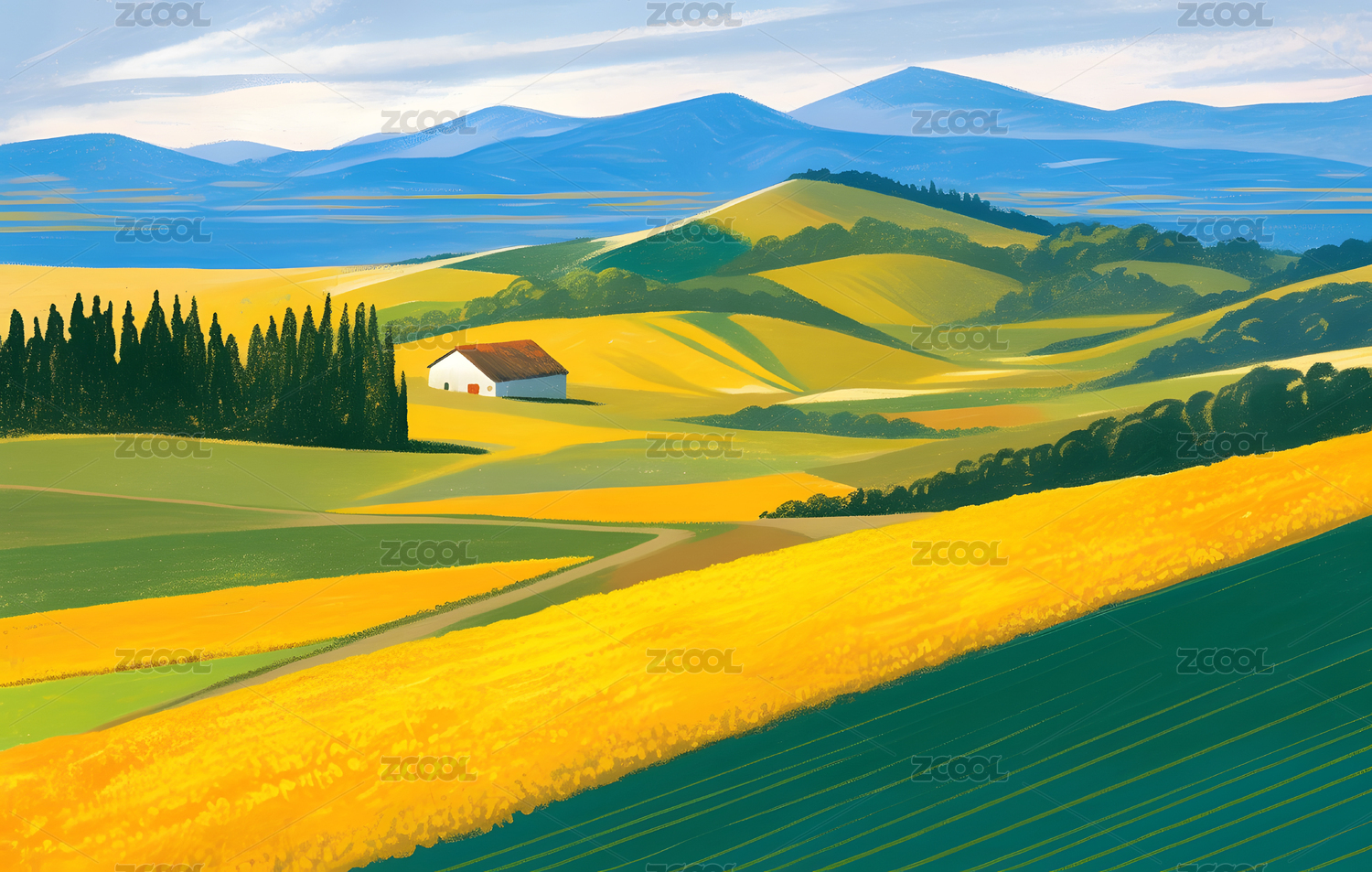 田园风光插画背景图