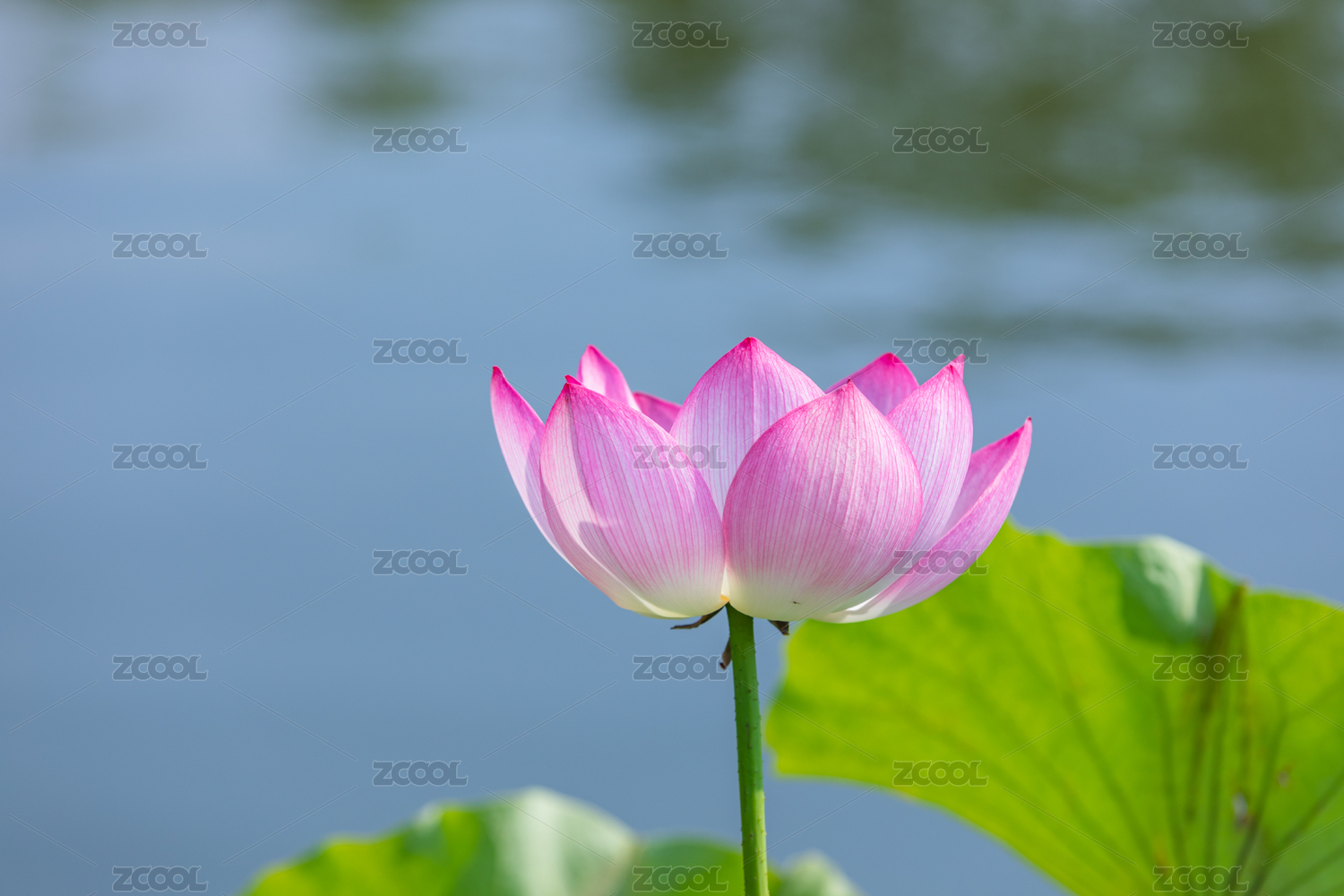一朵盛开的粉色的单瓣中国荷花