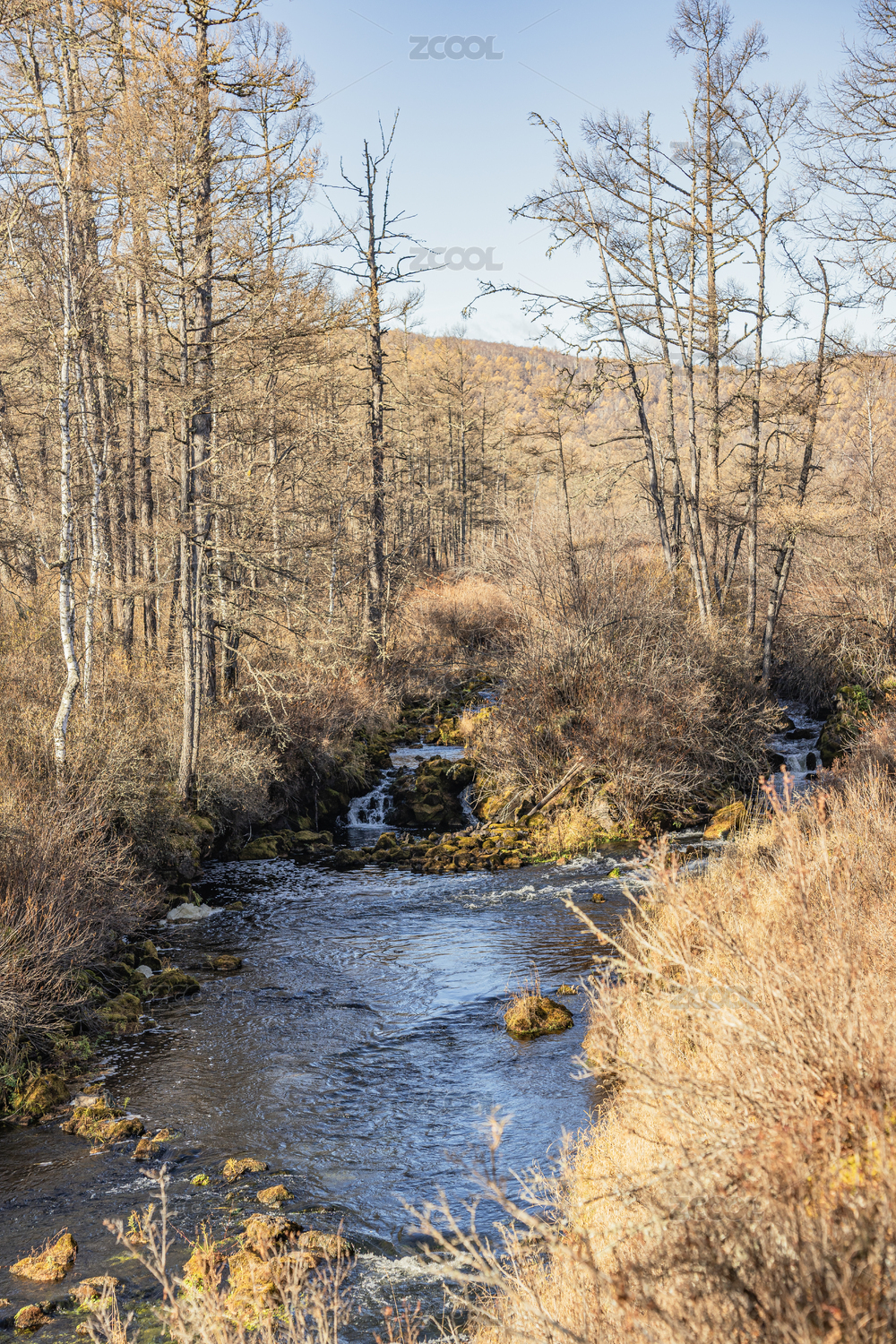 中国内蒙古不冻河秋季自然风光