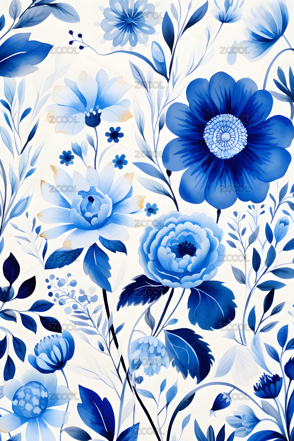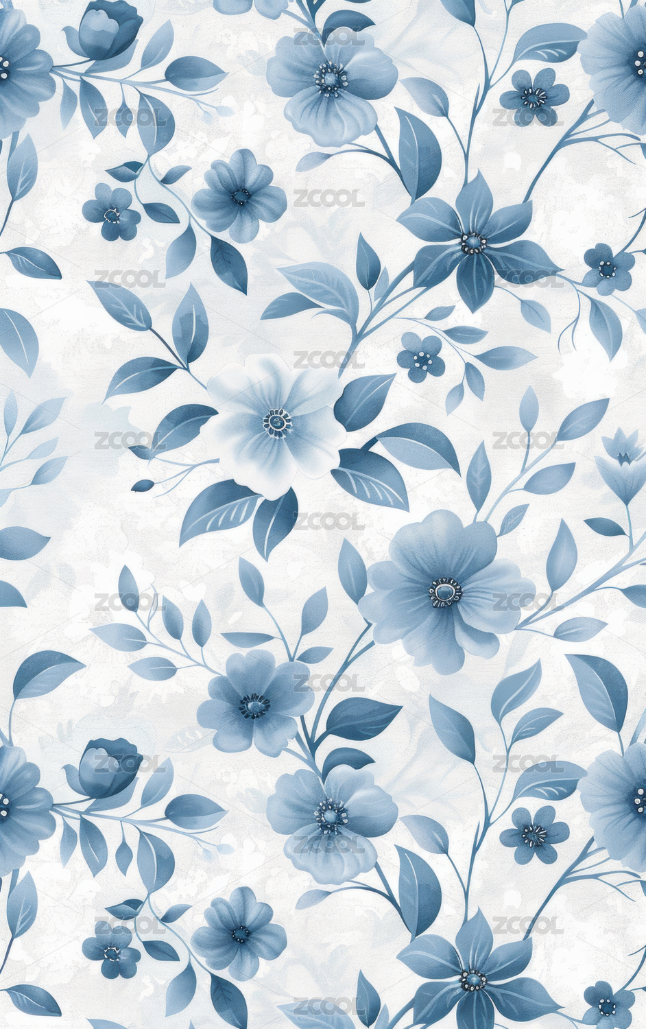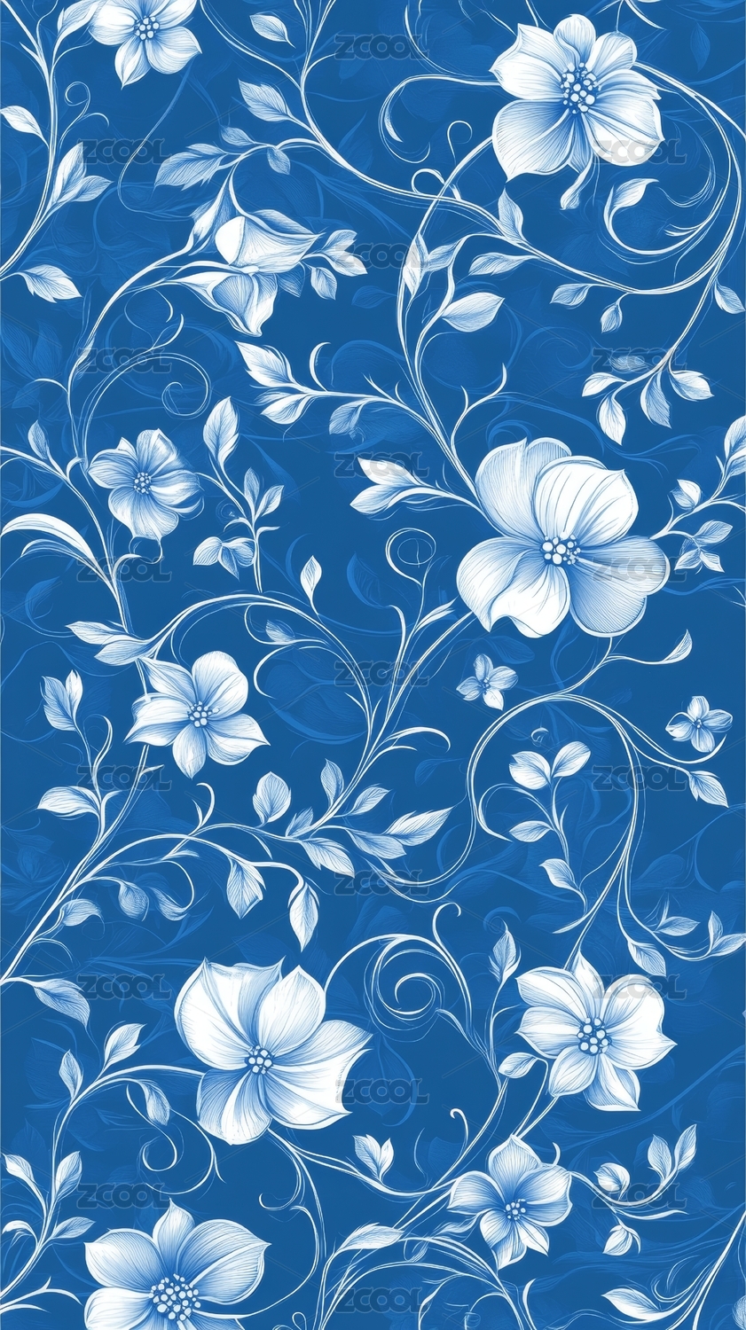 蓝色花卉壁纸图案