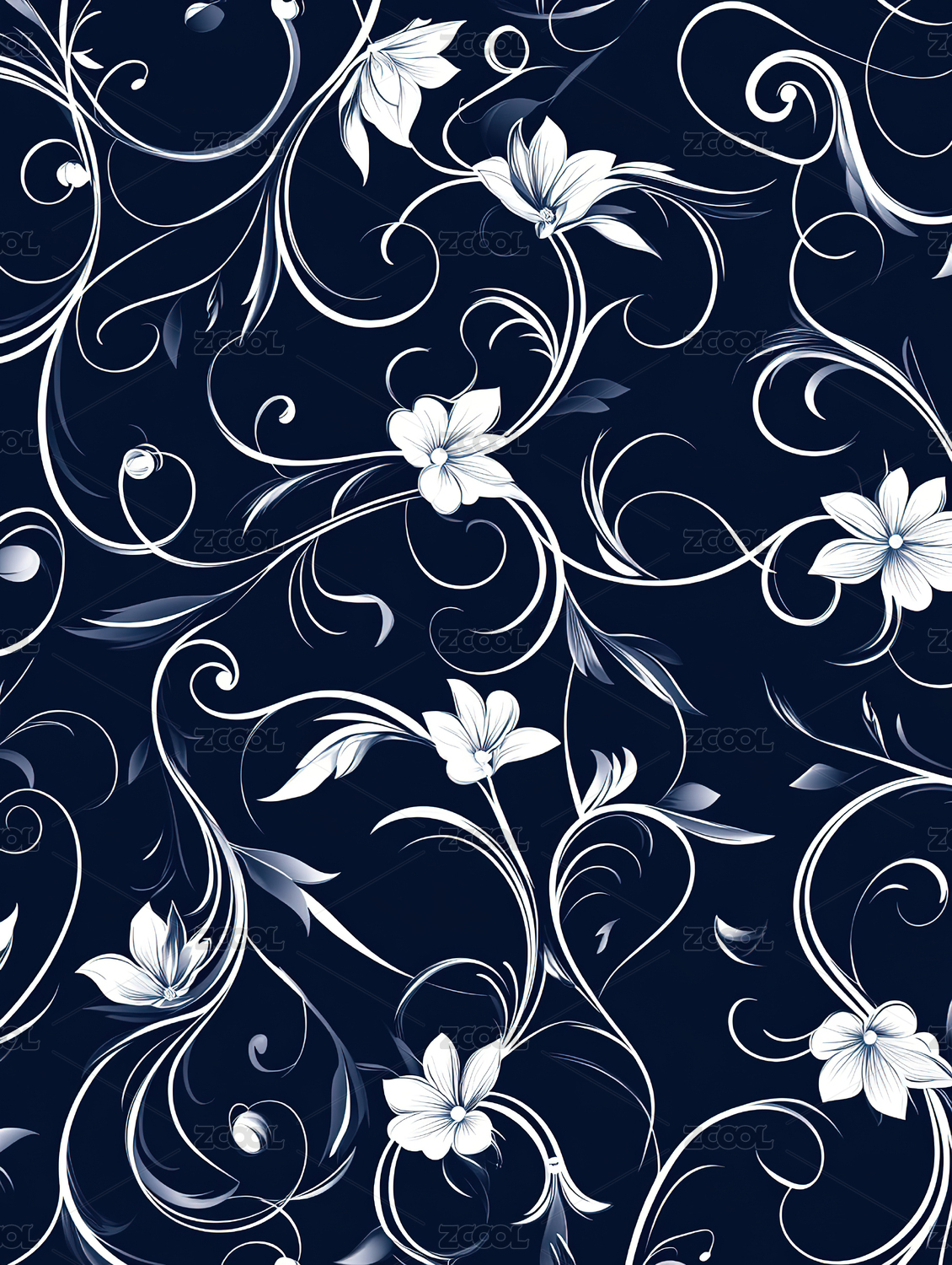 蓝色背景上的白色花卉图案