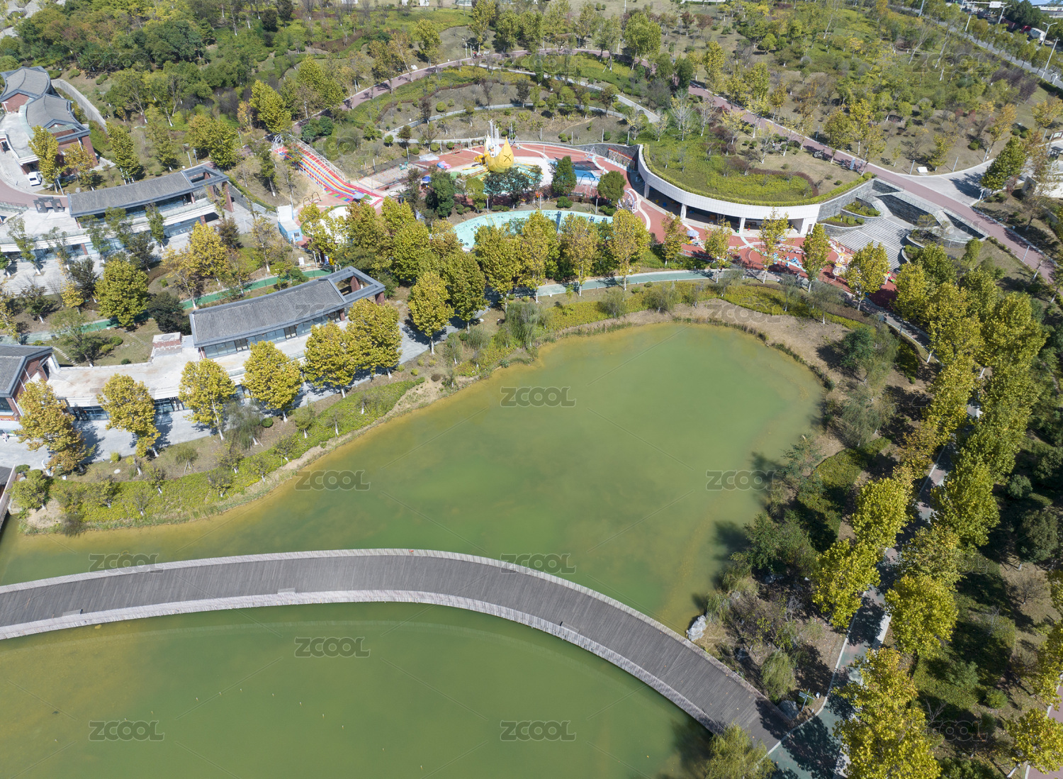 航拍中国广东省中山市儿童公园五彩景观小品