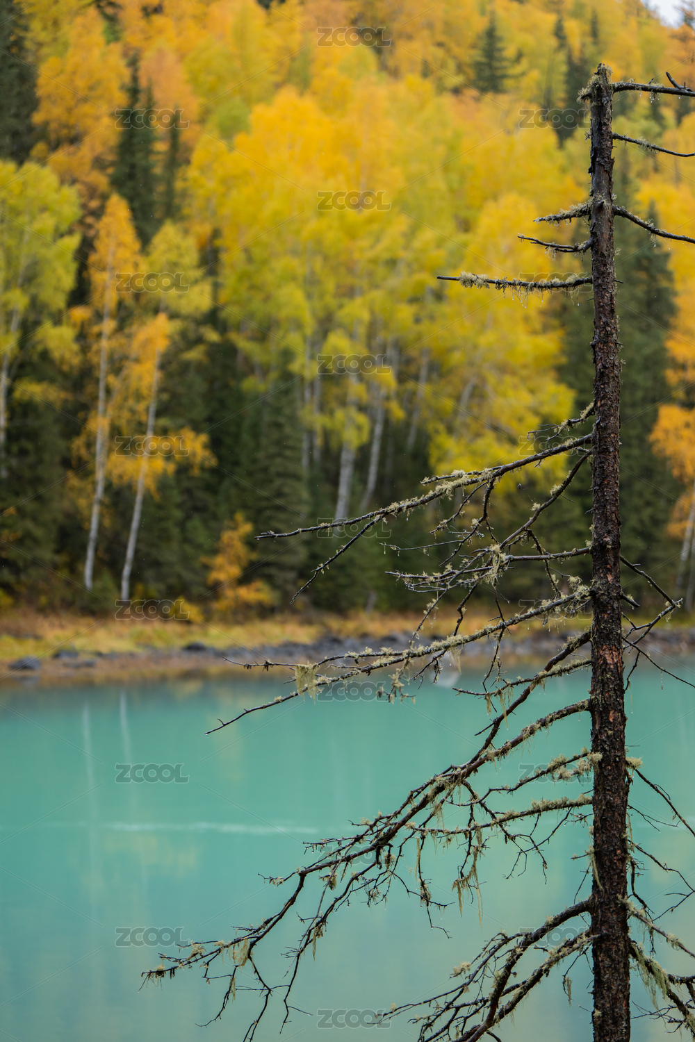 新疆喀纳斯秋季金色的枫叶林