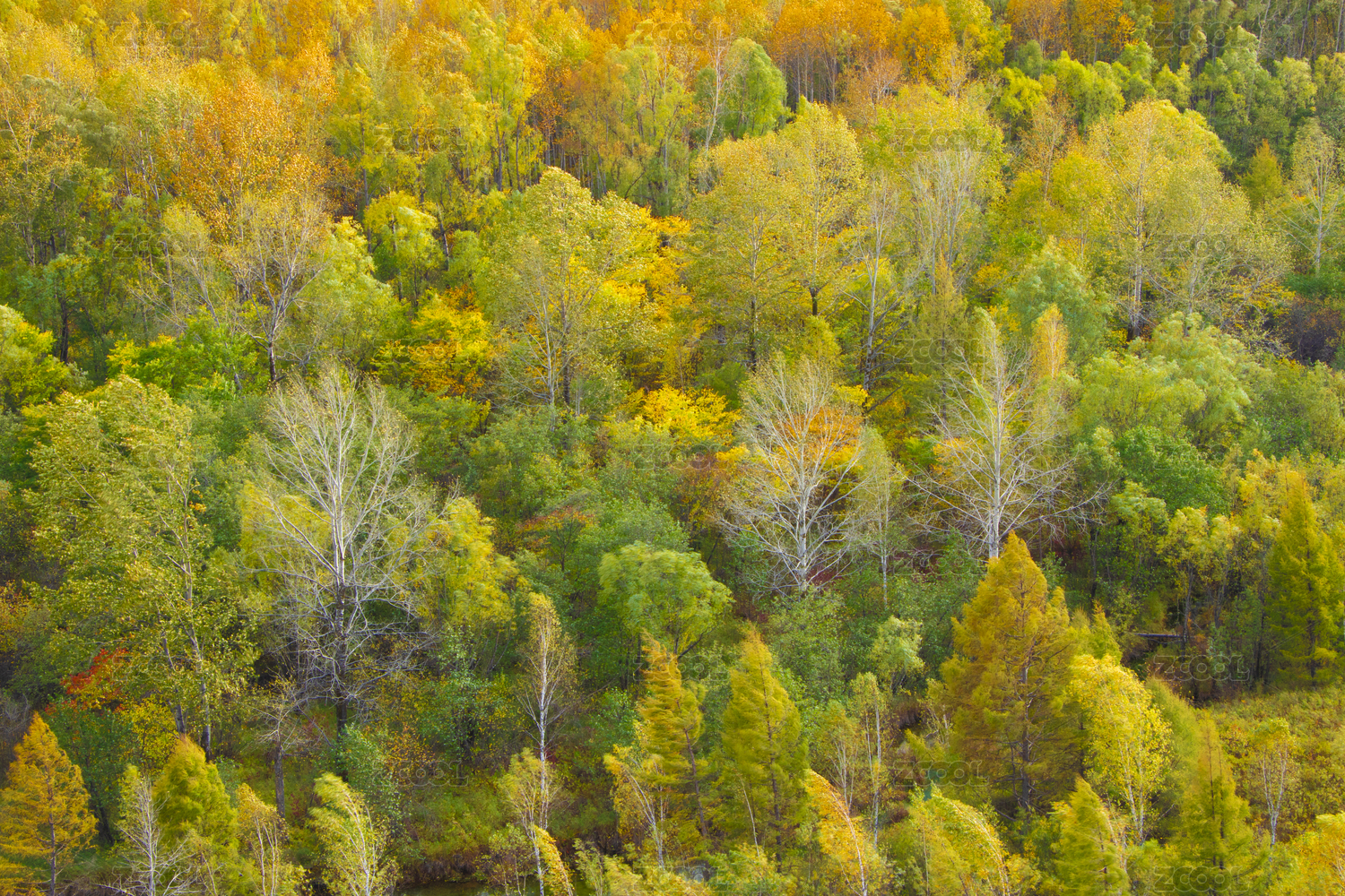 吉林长白山聚龙火山石林景区秋天的落叶松