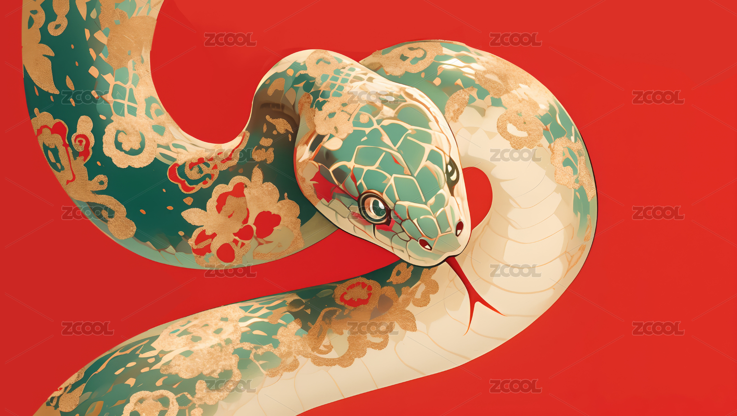 中国风彩绘蛇,新年吉祥蛇