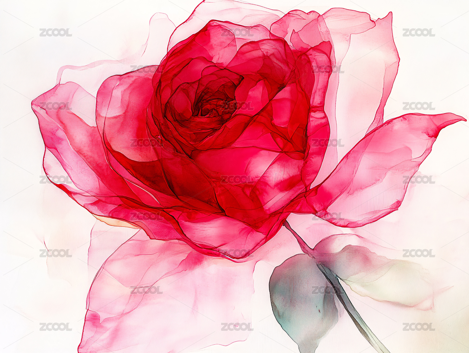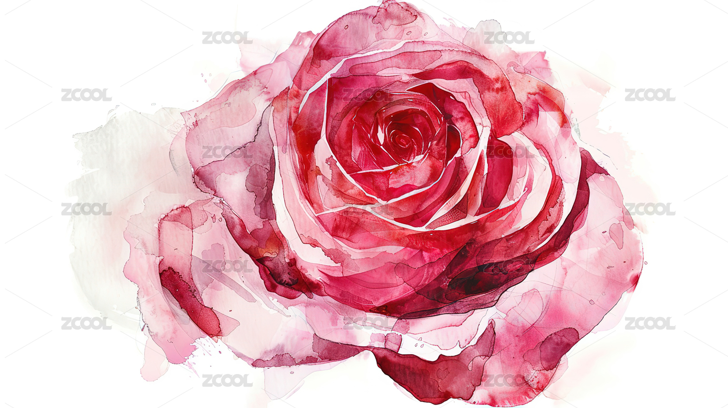 淡墨手绘水彩蓝玫瑰,纯色背景花卉素材插图