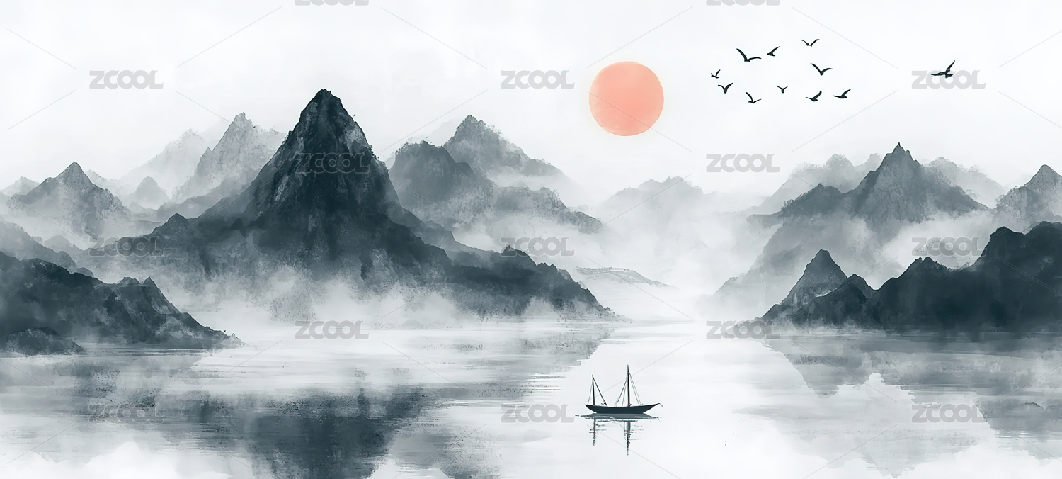 国风中式禅意水墨画