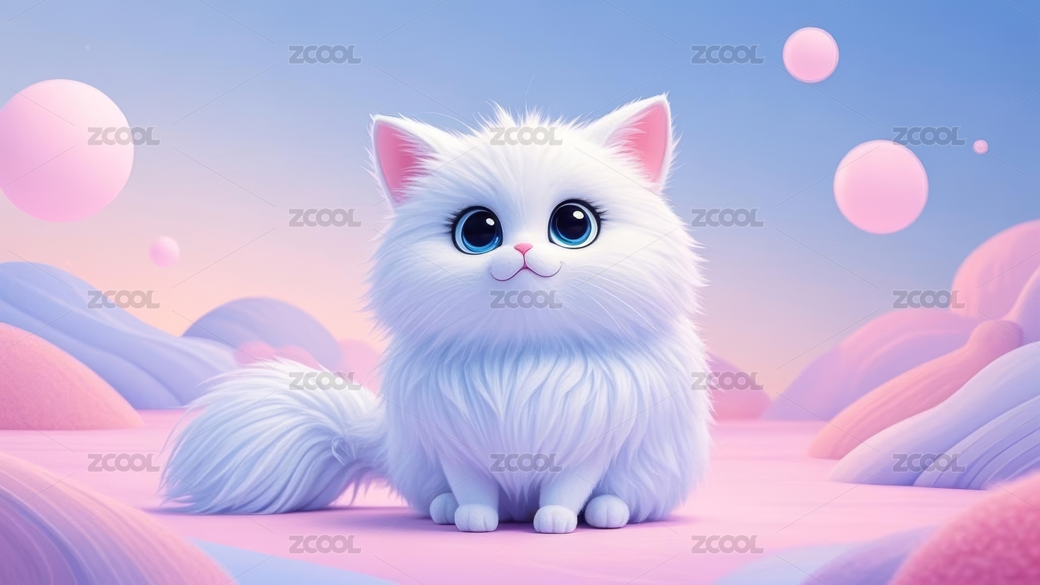 3D渲染超现实唯美风格的小猫